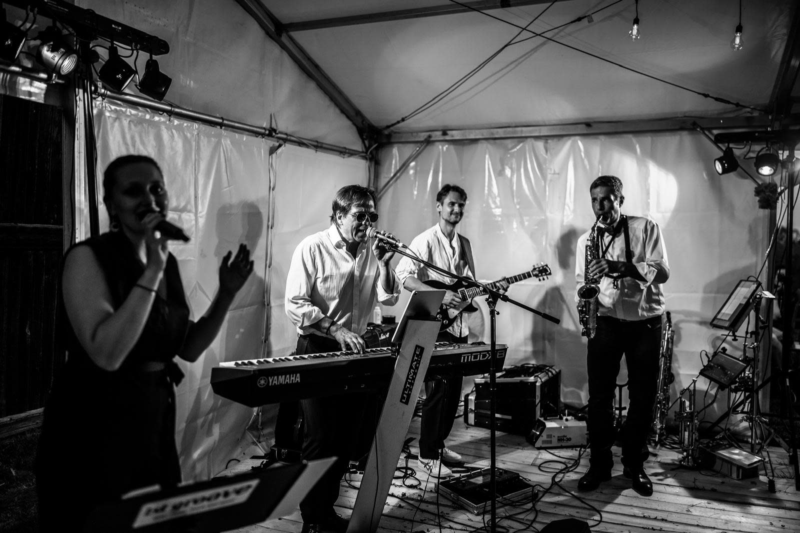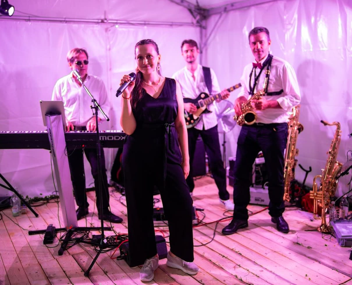 Wir bieten euch alles, was eine Band so braucht: Sängerin und Sänger sowie Liveinstrumente wie Saxophon / Trompete, Keyboard und Gitarre. Egal ob große oder kleine Bühne, mit unserer Besetzung aus 4 Musikern sind wir immer passend!