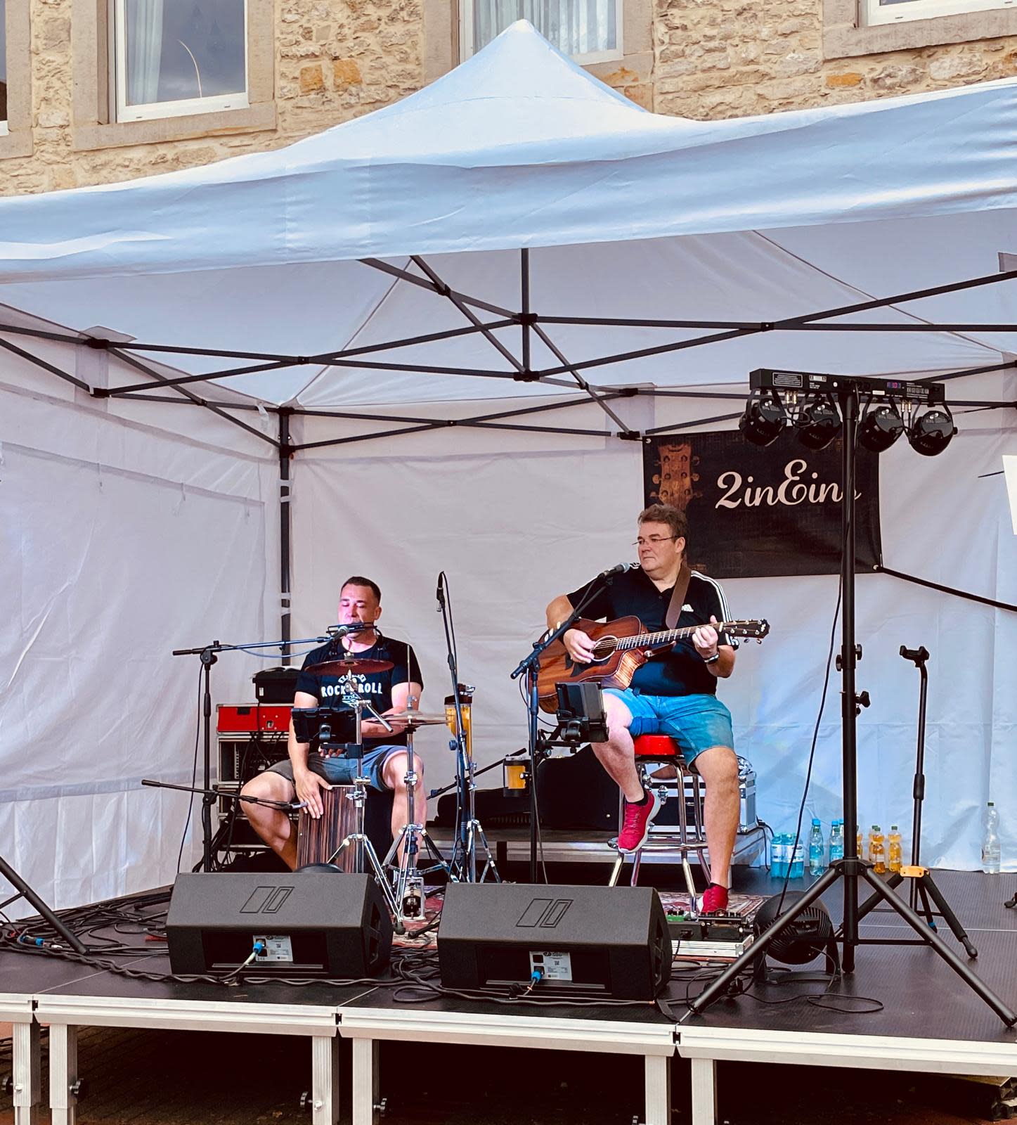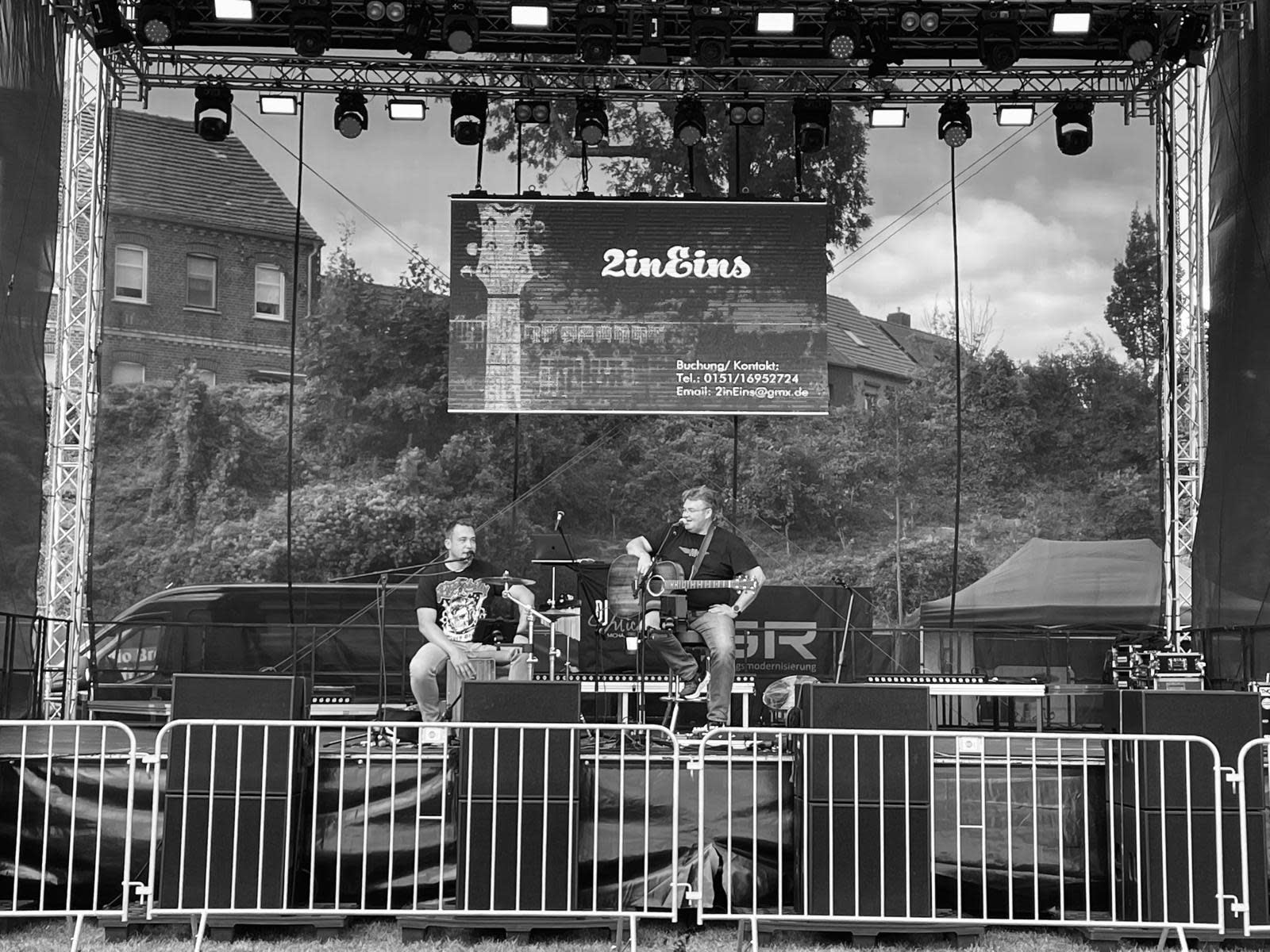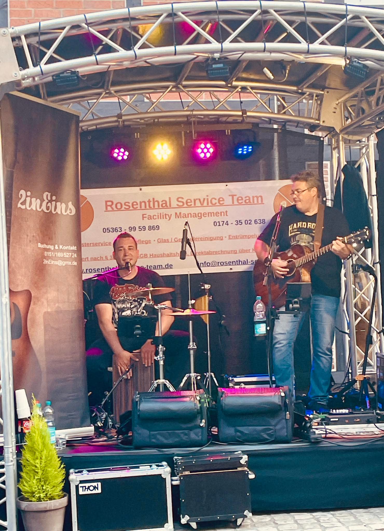Mit ausreichender Licht- und Beschallungstechnik laden 2inEins zu einer sanften zuhörenden Konzertstimmung ein, animieren aber auch mit ausgewählten Songs zum Abrocken.
