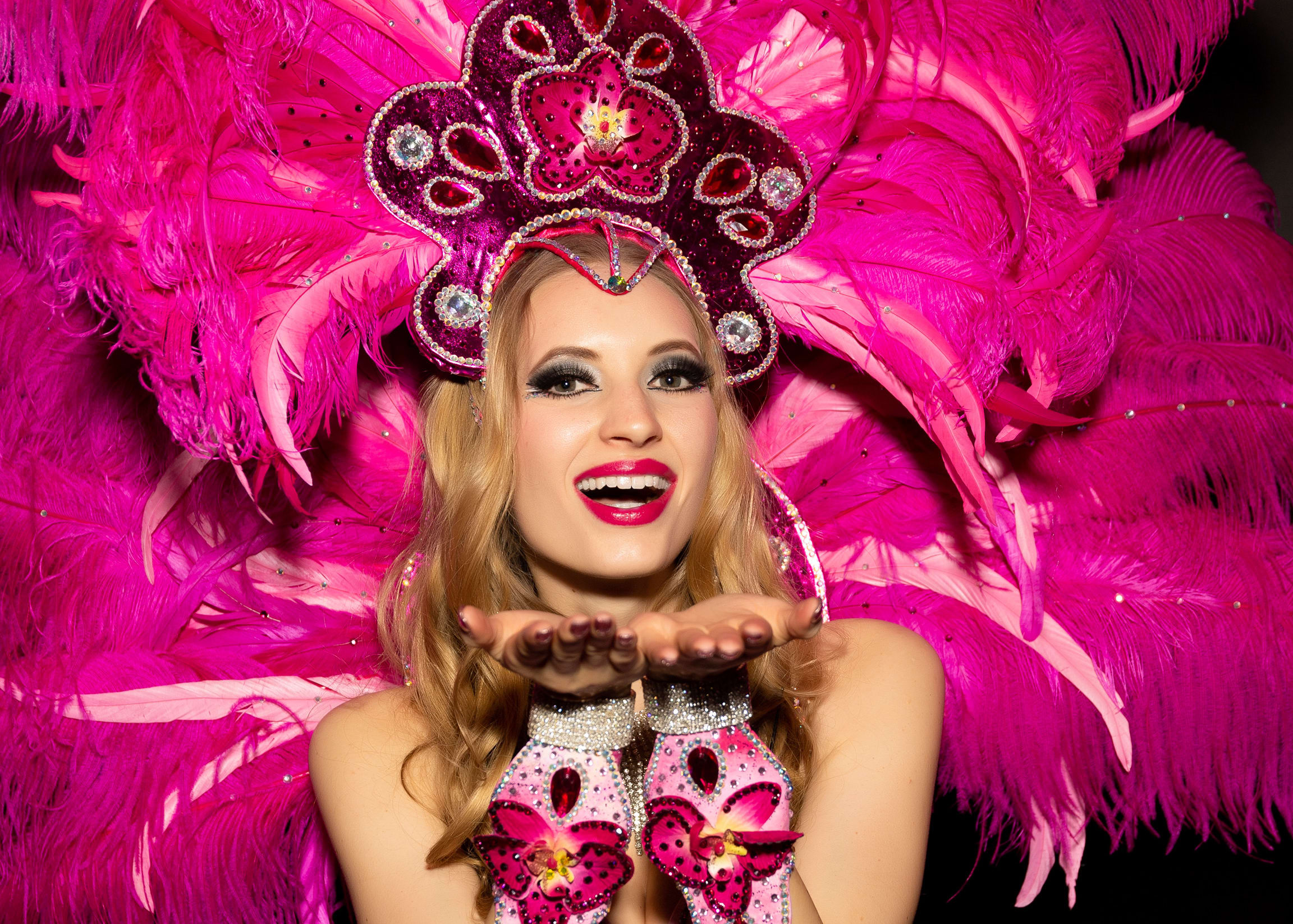 Holen Sie sich den Karneval aus Rio auf Ihre Party. Ausladende bunte Federkostüme wie bei der Parade in Rio de Janeiro, feurige brasilianische Rhythmen und südamerikanische Lebensfreude zeichnen diese Show aus.