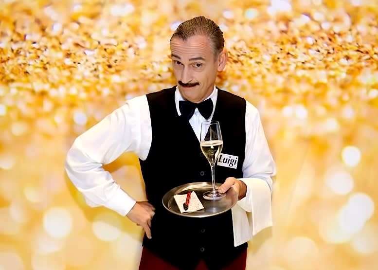 Zum Abschluss seiner Kellner-Performance kann Luigi eine kleine Zaubershow zum Besten geben.