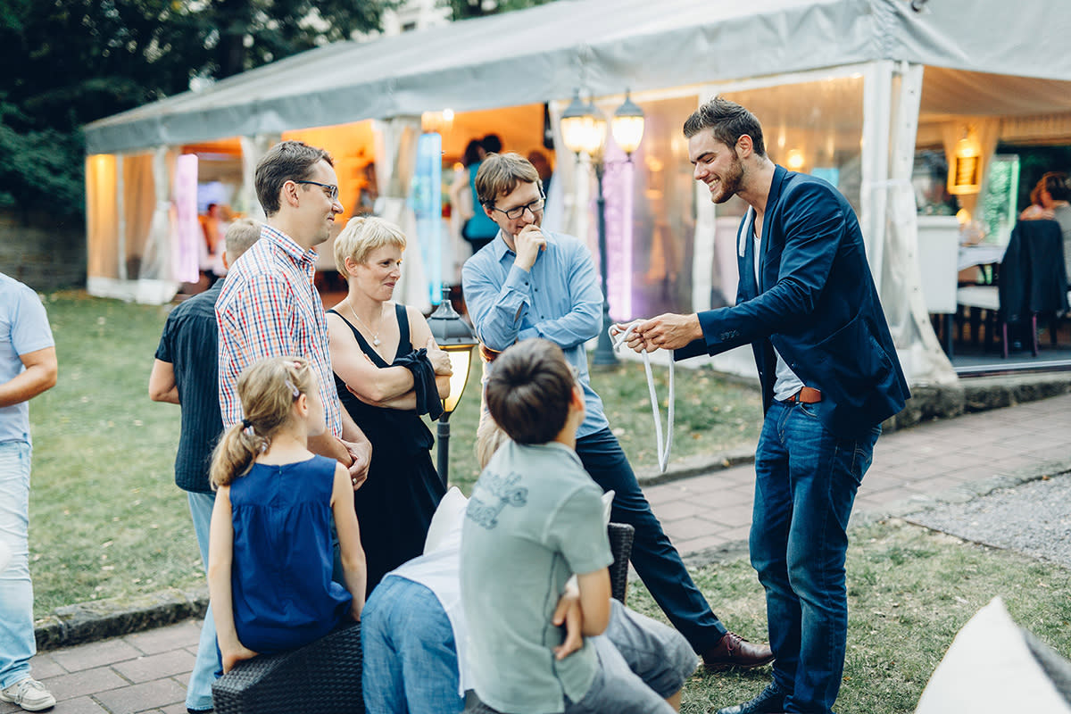 Erfrischend, charmant und interaktiv verzaubert Ben David Sie und Ihre Gäste. Mit seiner mehrfach preisgekrönten Magic Comedy Show bringt er jede Feier in die Stimmung, die sie verdient hat. Staunen und Lachen sind dabei garantiert. Ob Firmenfeier, Hochzeit oder Geburtstagsfeier - Magier Ben David passt sich Ihrer Veranstaltung an. Fragen Sie einfach und unverbindlich an.