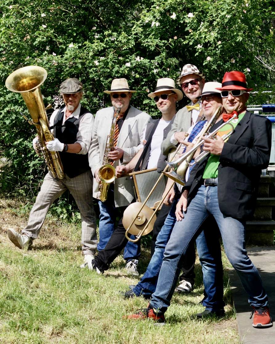 6 Musiker - allesamt verdiente Bläser, Zupfer und "Schläger" des Volkes - bieten ein wohlsortiertes Programm mit Ohrwürmern und Raritäten von gestern und vorgestern: Dixieland, Swing und Evergreens zum Verweilen oder für unterwegs. Wir kennen keine No Go's.