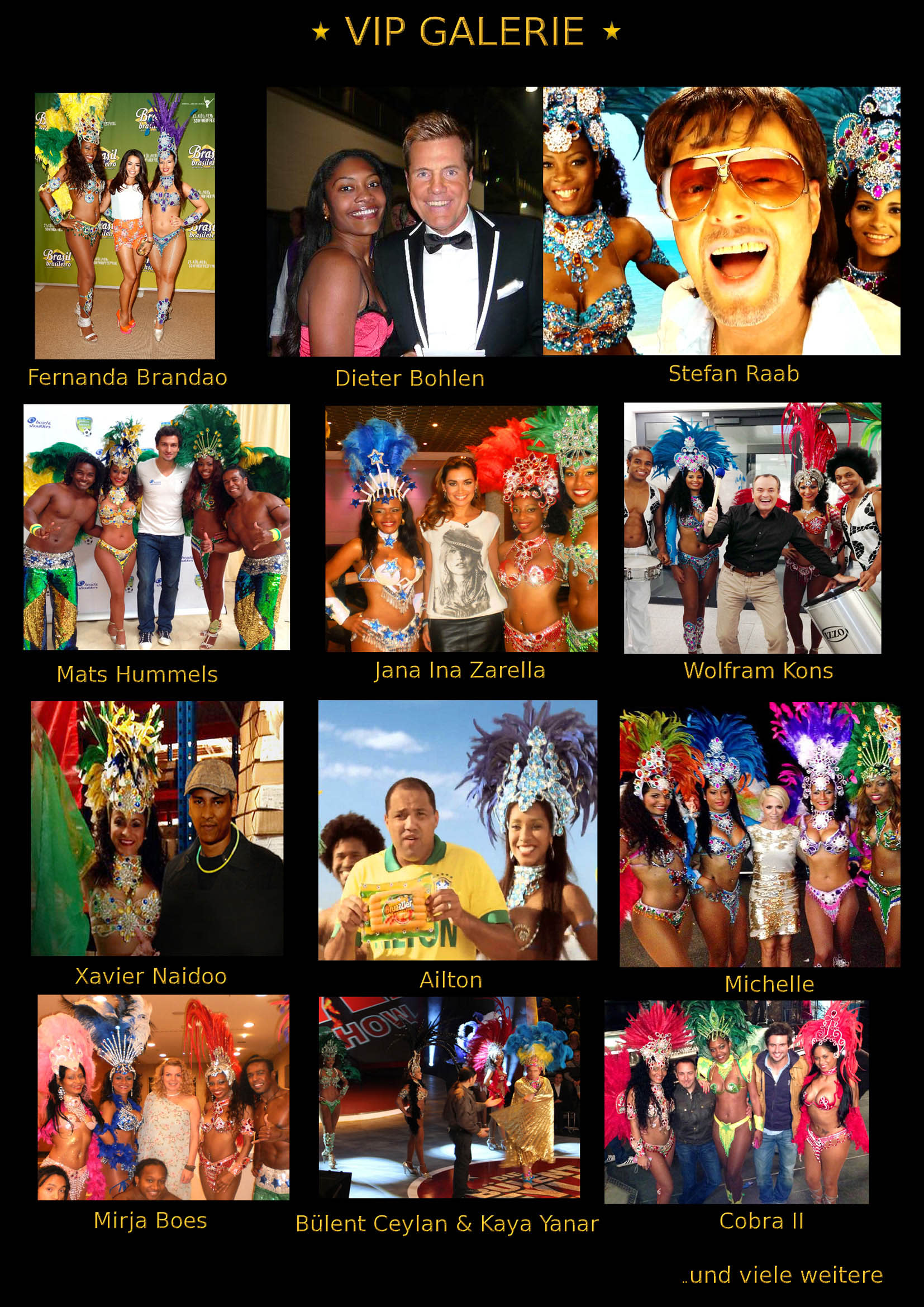Verleihen Sie Ihrem Event eine glanzvolle Note und beeindrucken Sie ihre Gäste mit der atemberaubendem Brasil Show aus Köln. Zu sehen sind wir zb auf Messeevents, TV Shows, Hochzeiten, Geburtstagen, Firmenfeiern und allen anderen Anlässen.