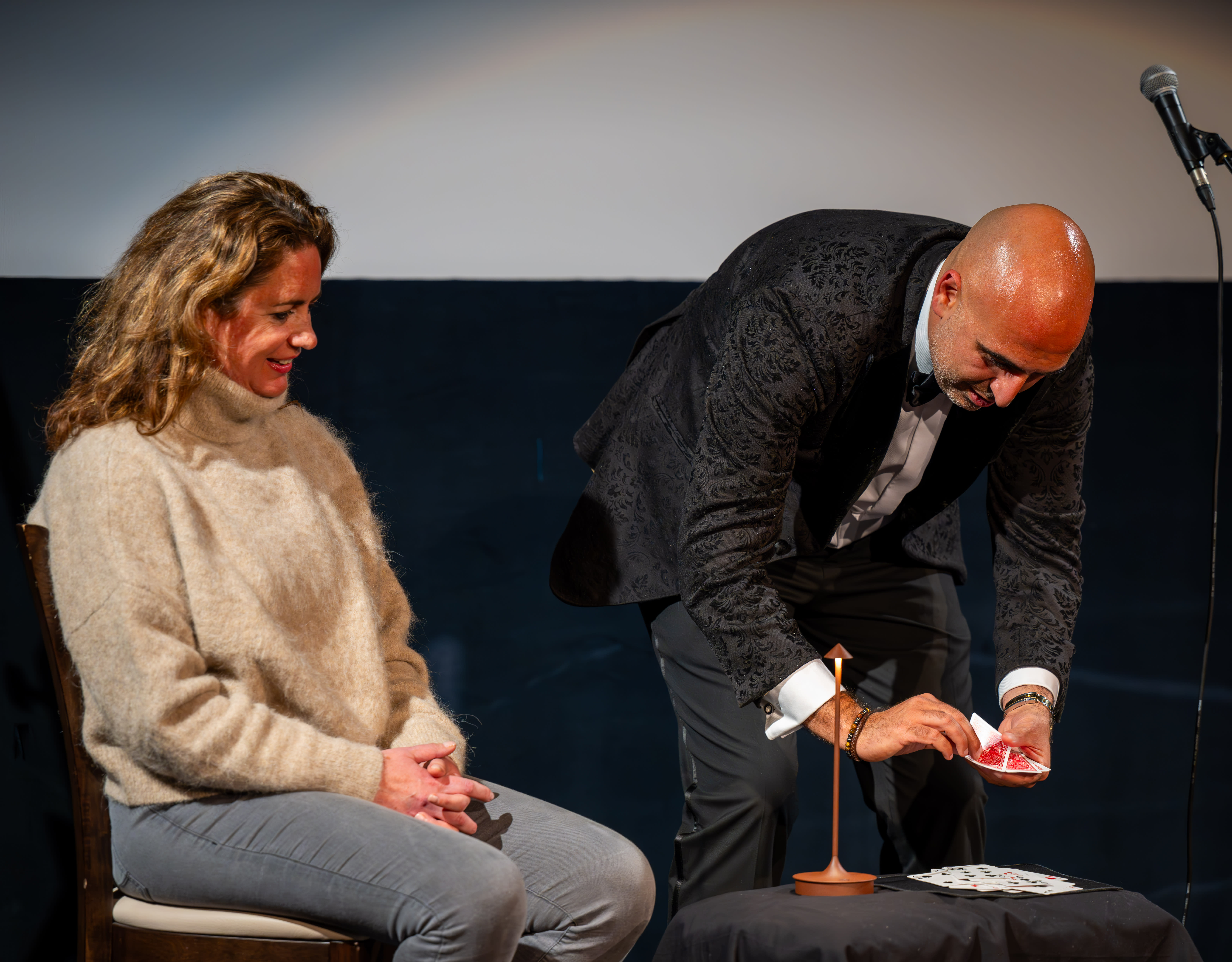 Sie möchten Ihre Mitarbeiter oder Geschäftspartner begeistern? Mo & Abri bieten eine maßgeschneiderte Show aus Magie, Gedankenlesen und – auf Wunsch – Gesang. Ob als Highlight einer Mottoveranstaltung oder zur Auflockerung eines Business-Events, sie sorgen für mitreißende Unterhaltung und unvergessliche Momente. Mo verblüfft mit faszinierenden Illusionen, während Abri Gedanken liest und das Publikum fesselt. Gemeinsam schaffen sie interaktive Erlebnisse, bei denen Ihre Gäste selbst Teil der Magie werden – ein einzigartiges Highlight für Ihr Event.