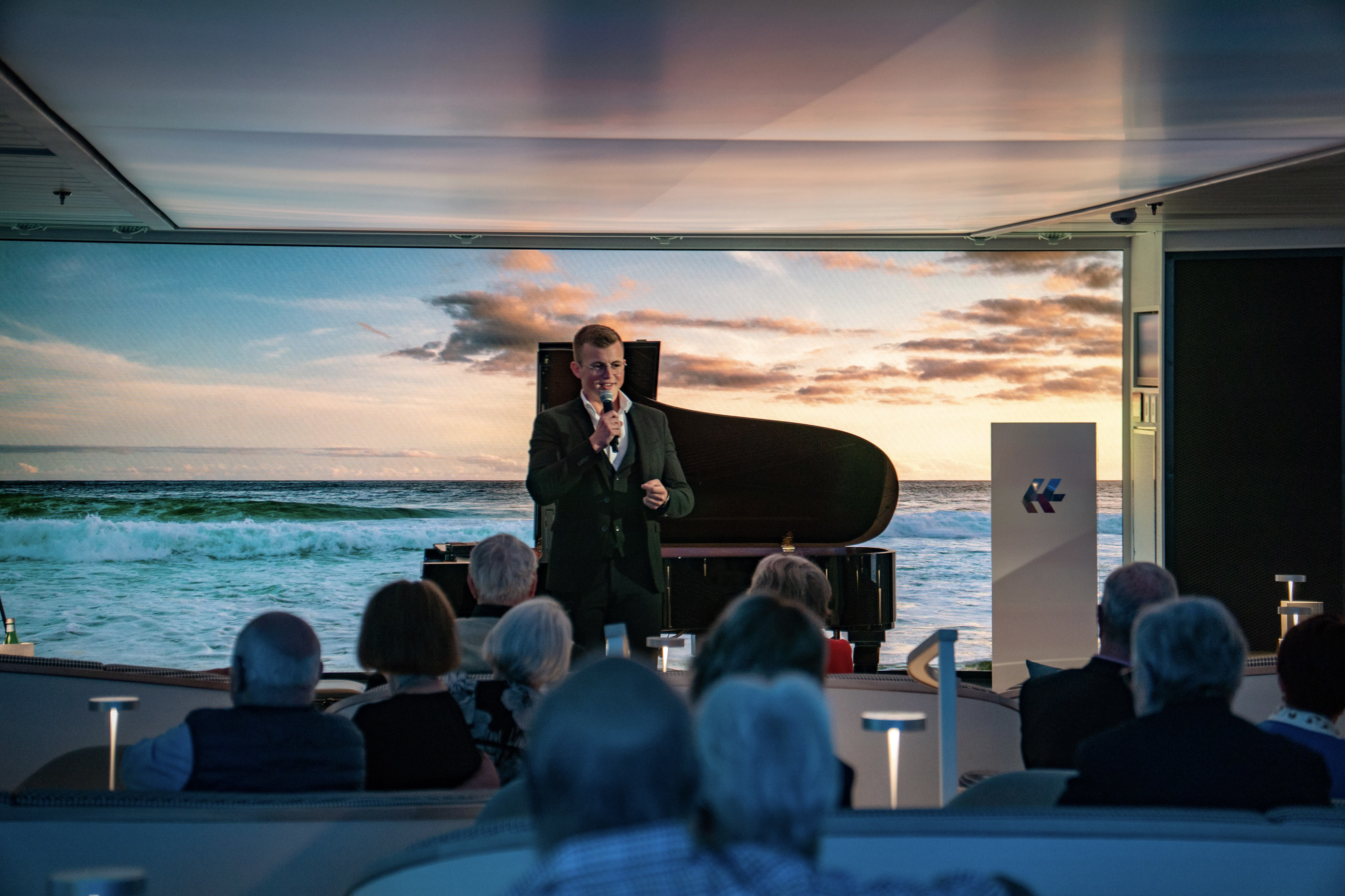 Mein Name ist Daniel Hoffmann Farré und ich bin professioneller Pianist aus Stuttgart. Neben meiner Karriere als Konzert- und Eventpianist stehe ich seit 2021 als Ozeanpianist unter Vertrag bei Hapag-Lloyd.