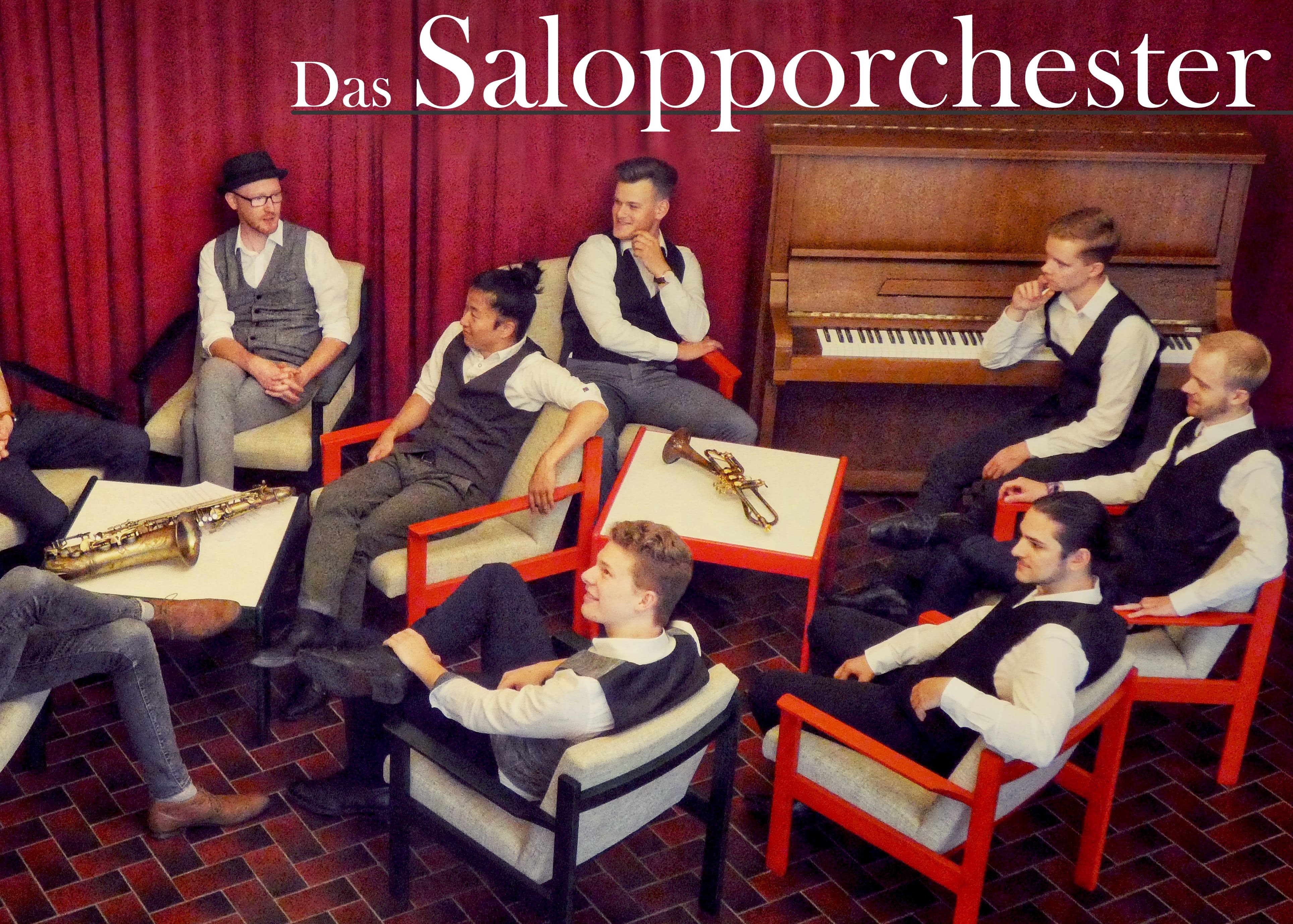 Wir, das Salopporchester, sind ein sogenanntes Large Ensemble. Dieses setzt sich zusammen aus einer Rhythmusgruppe (Schlagzeug, Bass, Klavier) und einem Bläsersatz (2x Trompete, 2x Saxophon, 1x Posaune) sowie einem Dirigenten, welcher die Band zusammenhält. Die Spieler dieses 9-köpfigen Ensembles haben alle eine professionelle, mehrjährige musikalische Ausbildung erhalten. Trotz unseres geringen Durchschnittsalters können wir – zusammengerechnet – auf mehrere Jahrzehnte Ensembleerfahrung und viele Liveauftritte zurückblicken. Mit anderen Worten: Wir sind ein Haufen junger, dynamischer Musiker, die darauf brennen, ihr Können unter Beweis zu stellen!