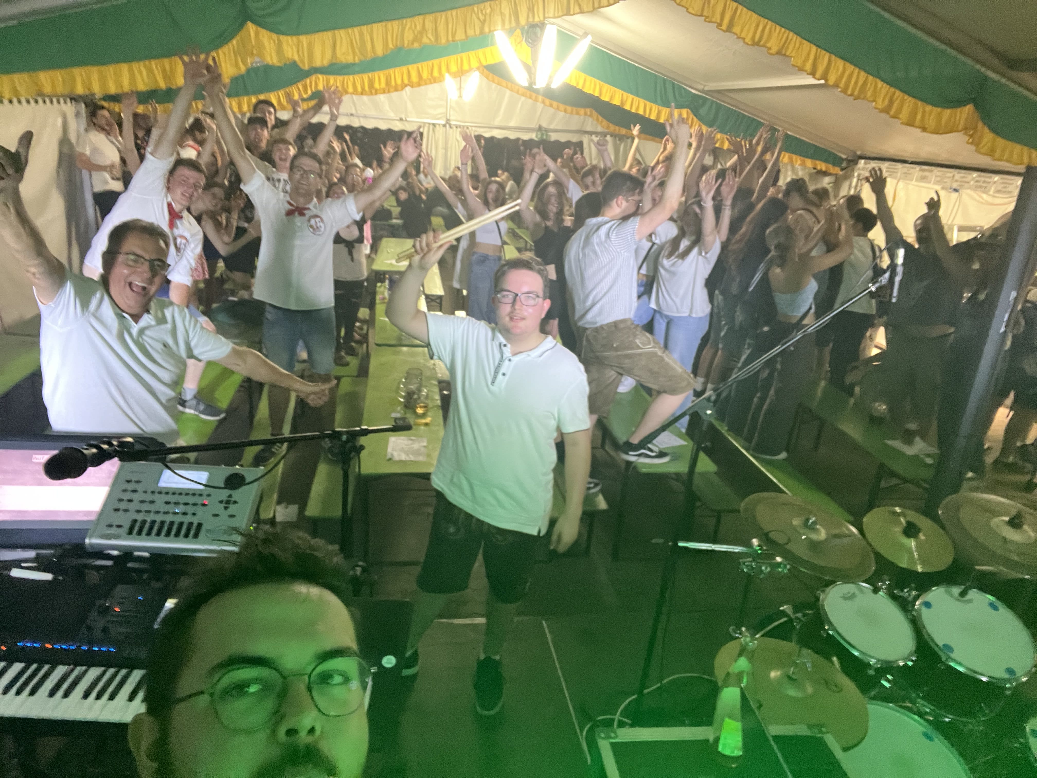 ab dem ersten Kontakt alles sehr familiär und mit Interesse was wir erwarten und erwarten können. Dafür kam die Band bei uns an und wusste ab dem ersten Moment was zu tun ist - von der Lautstärke bis zur Musik. Unser kleines Kirchweihzelt (ca. 300 Personen) stand, der Außenbereich wurde leicht mit beschallt und alle von den Gästen über die Organisatoren bis zur Band hatten ihren Spaß und man hat die Lust der Band gespürt.