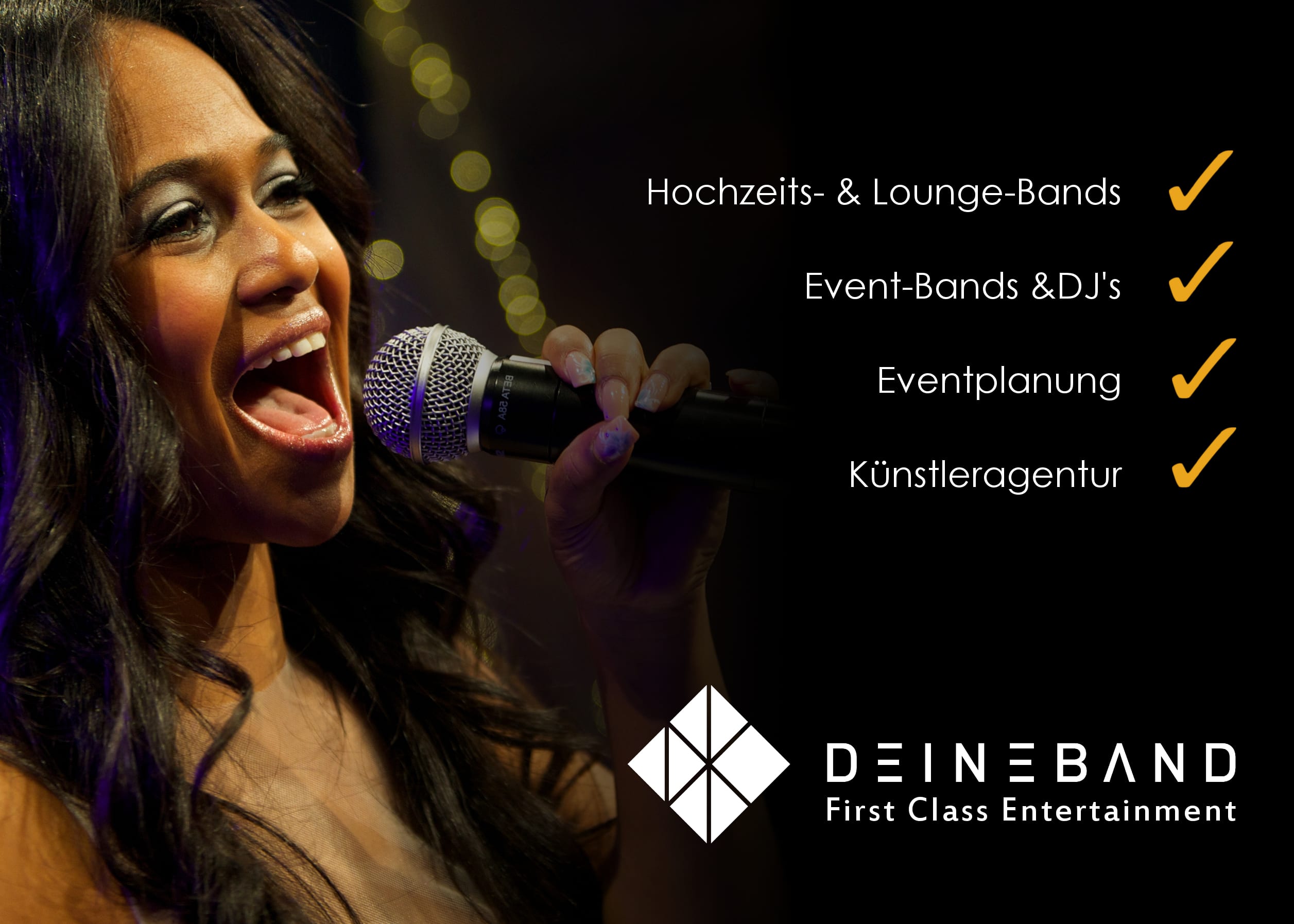 DeineBand - die Liveband mit dem Baukastensystem aus den besten Musikern und Sängern Deutschlands. Buchen Sie DeineBand als Loungeband, Akustikband, Partyband oder Eventband für Firmenfeiern, Business-Events, Stadtfeste, Hochzeit oder Geburtstag. Wir spielen auch international auf Kongressen, Inzentives, VIP Events, Messen und Partys.
