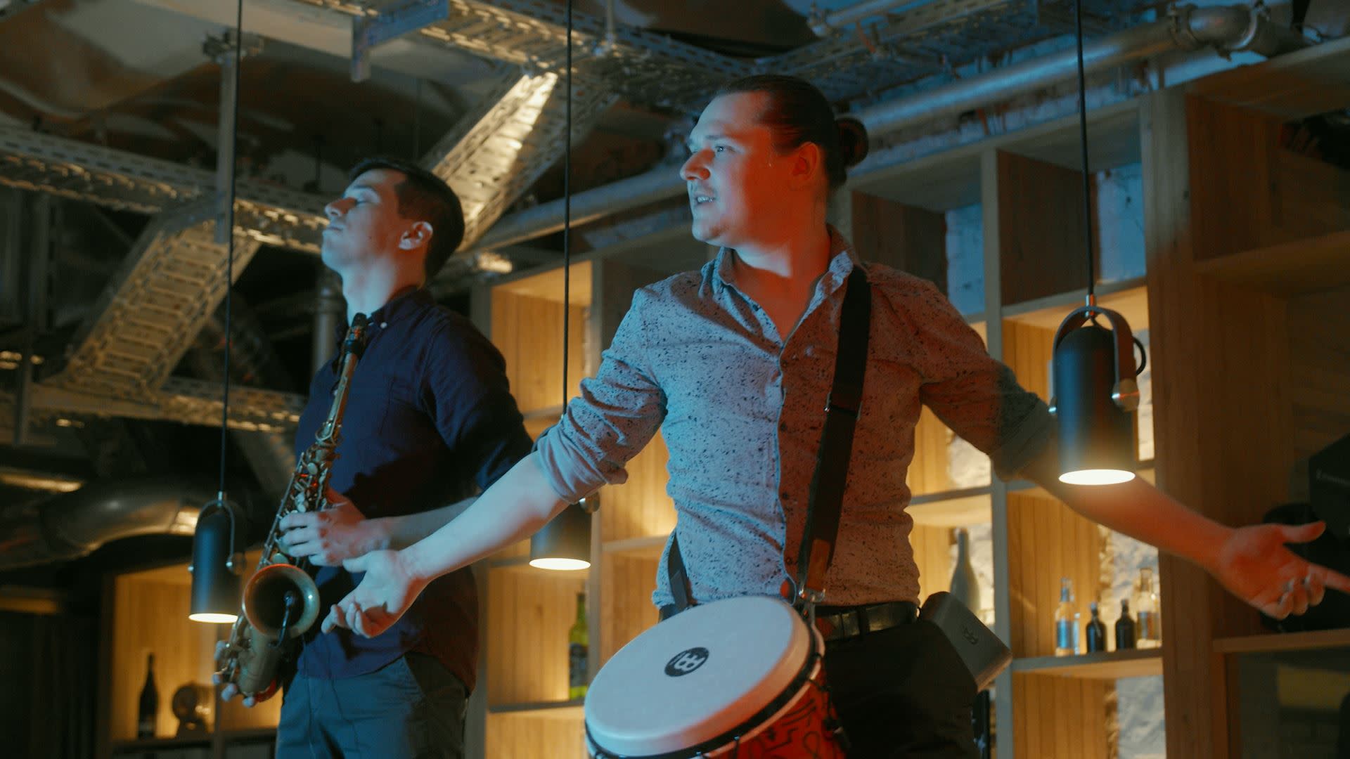 Unser DJ versorgt eure Party die ganze Zeit über mit Musik und unsere Live Musiker an Saxophon und Drums/Percussion sorgen mit ihren Power-Sets für Live-Musik.
