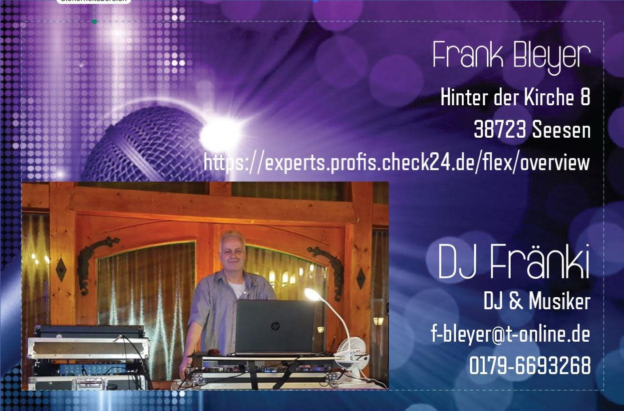 Wenn Sie DJ Frank über dieses Formular kontaktieren, antwortet DJ Frank Ihnen schnellstmöglich. Es ist gratis. Sie verpflichten sich nicht dazu, das erhaltene Angebot anzunehmen.
