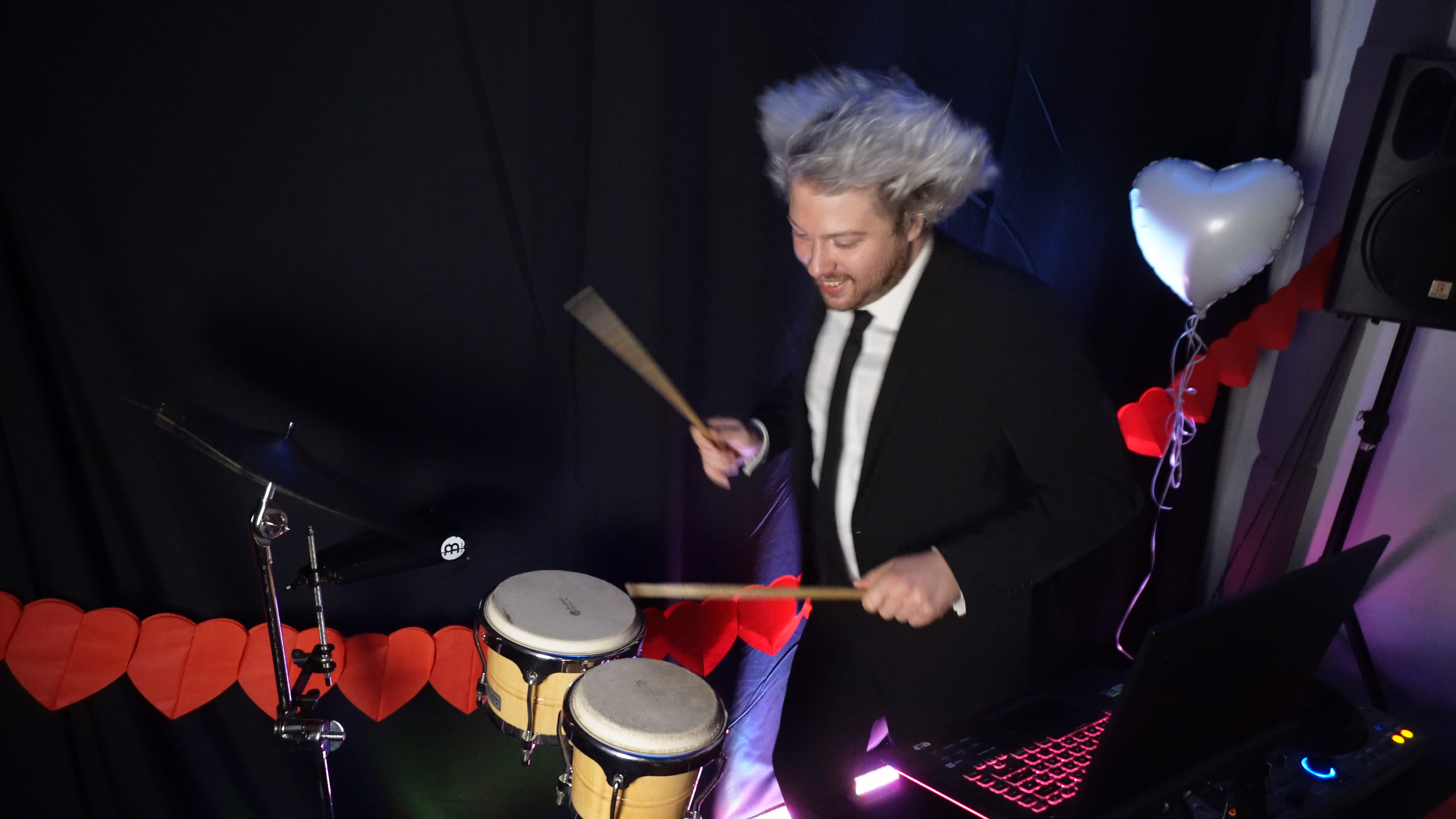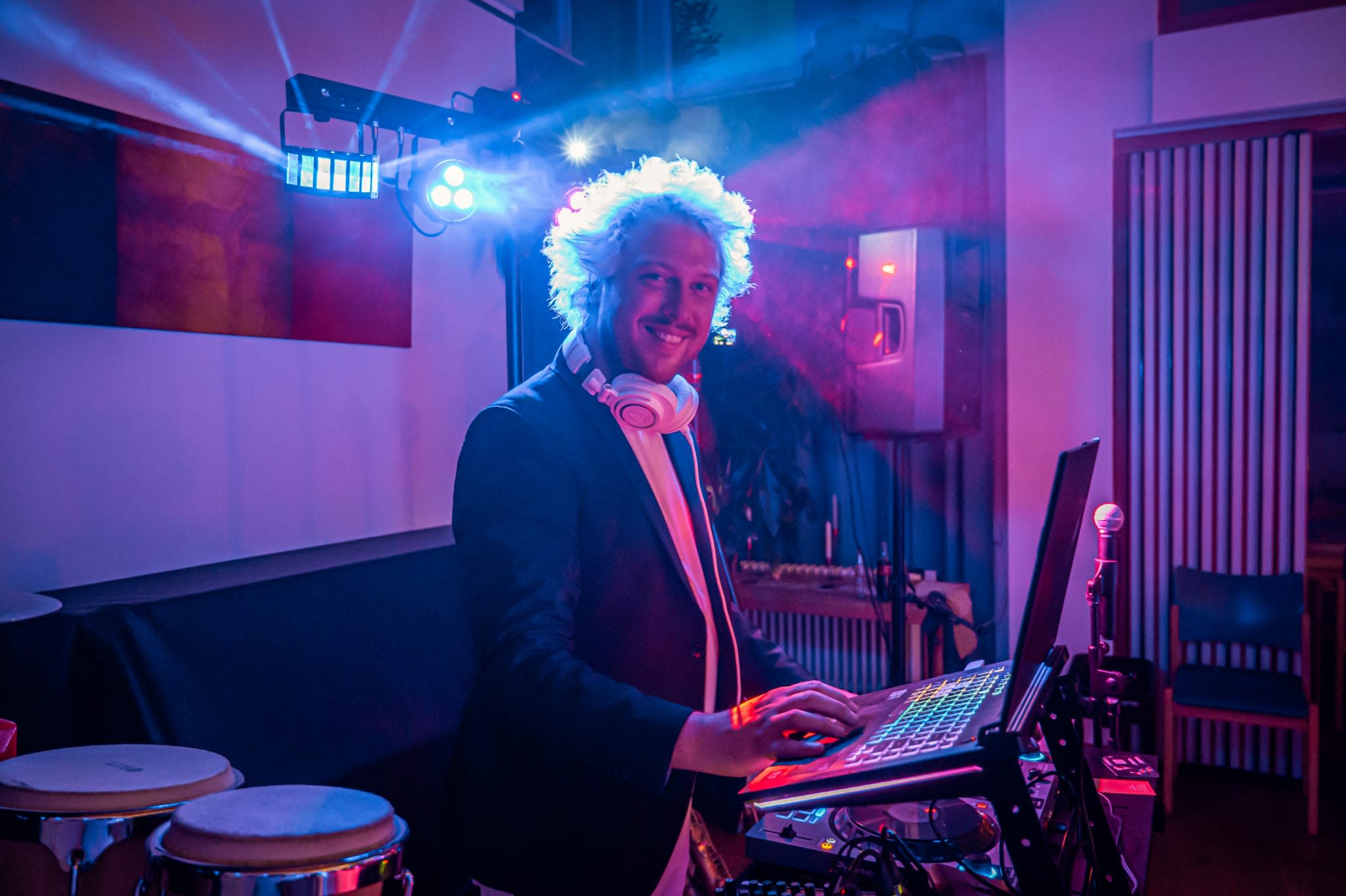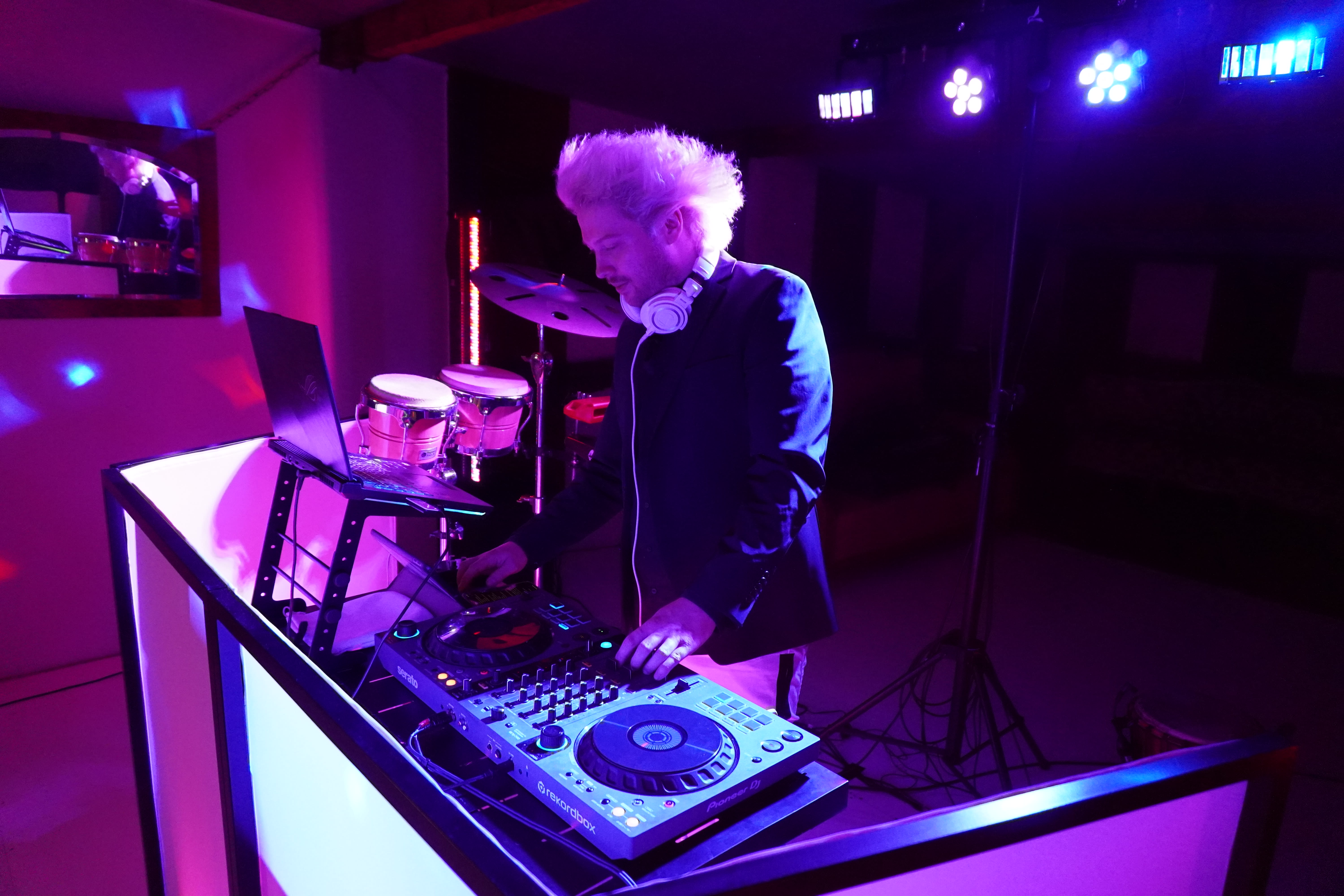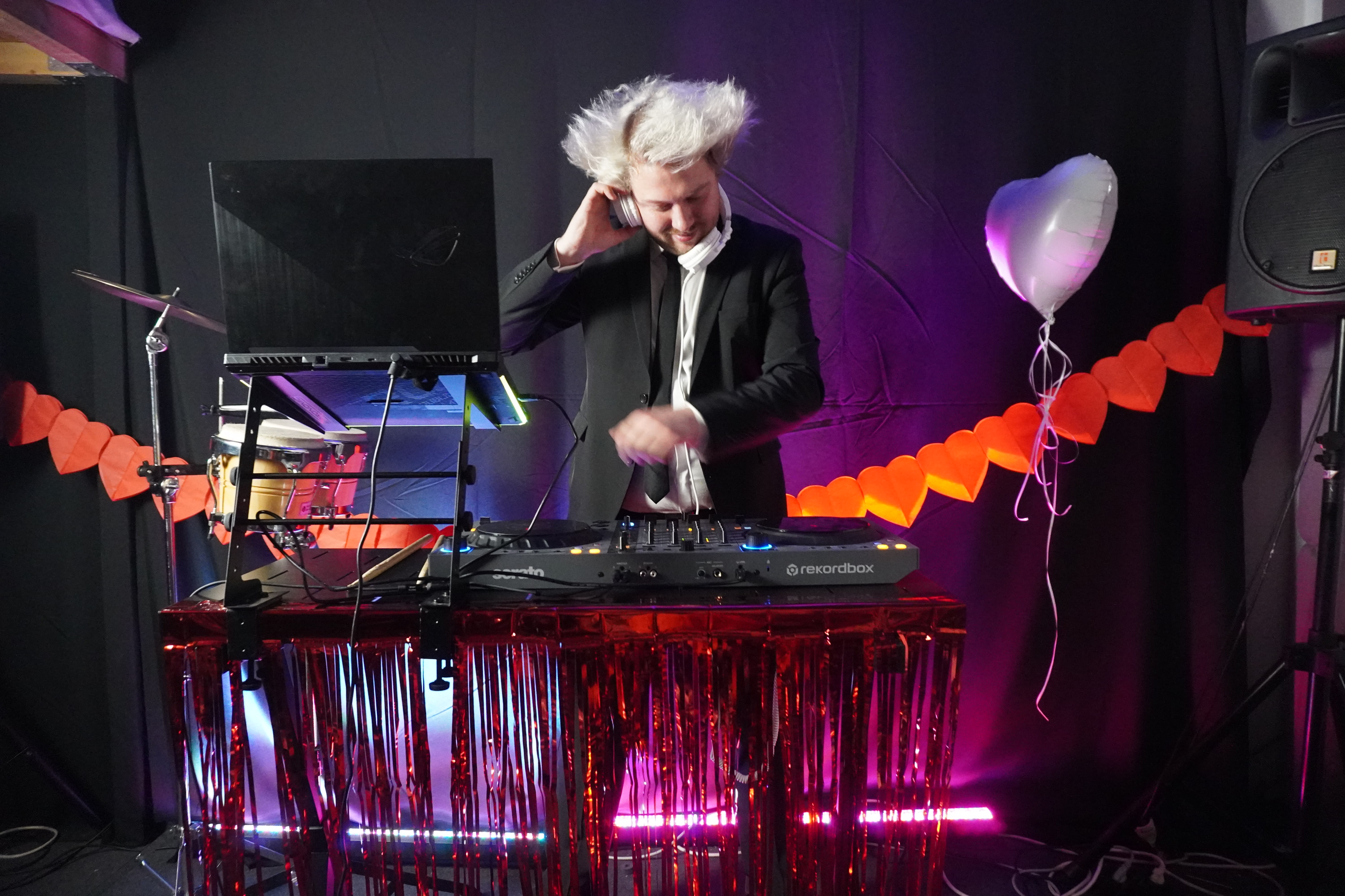 Ich bin DJ Thunder Hair aus Köln – professioneller Event- und Hochzeits-DJ mit einem ganz besonderen Highlight: Ich kombiniere meine DJ-Sets mit Live-Drums, die ich auf den Höhepunkten meiner Sets spiele. So entsteht eine mitreißende Performance, die nicht nur hörbar, sondern auch visuell erlebbar ist – ein echter Gänsehautmoment für deine Gäste.