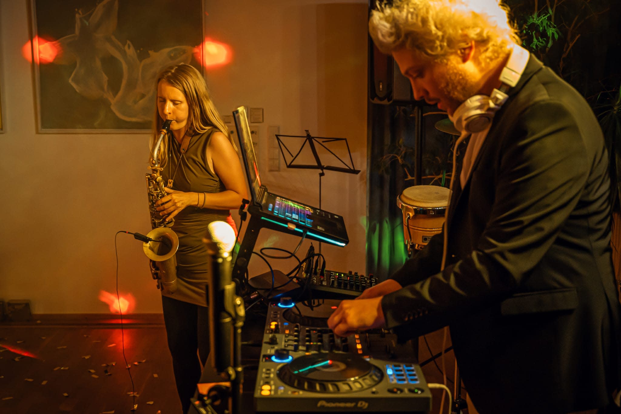 Auf Anfrage kann auch ein professioneller Saxophonist oder Saxophonistin hinzugebucht werden.