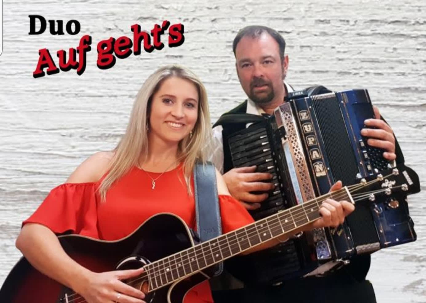 Duo "Auf geht´s" ... Party- Tanz- und Hochzeitsduo aus Bayern - unser Repertoire reicht von Volksmusik, Oldies, Country, über aktuelle Schlager bis hin zu Pop, Rock und moderner Tanzmusik.