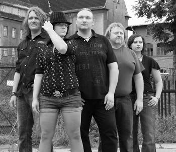 Zusammensetzung der Band: Sängerin, Keyboarderin, Gitarrist, Bassist, Schlagzeuger sowie zwei Techniker.