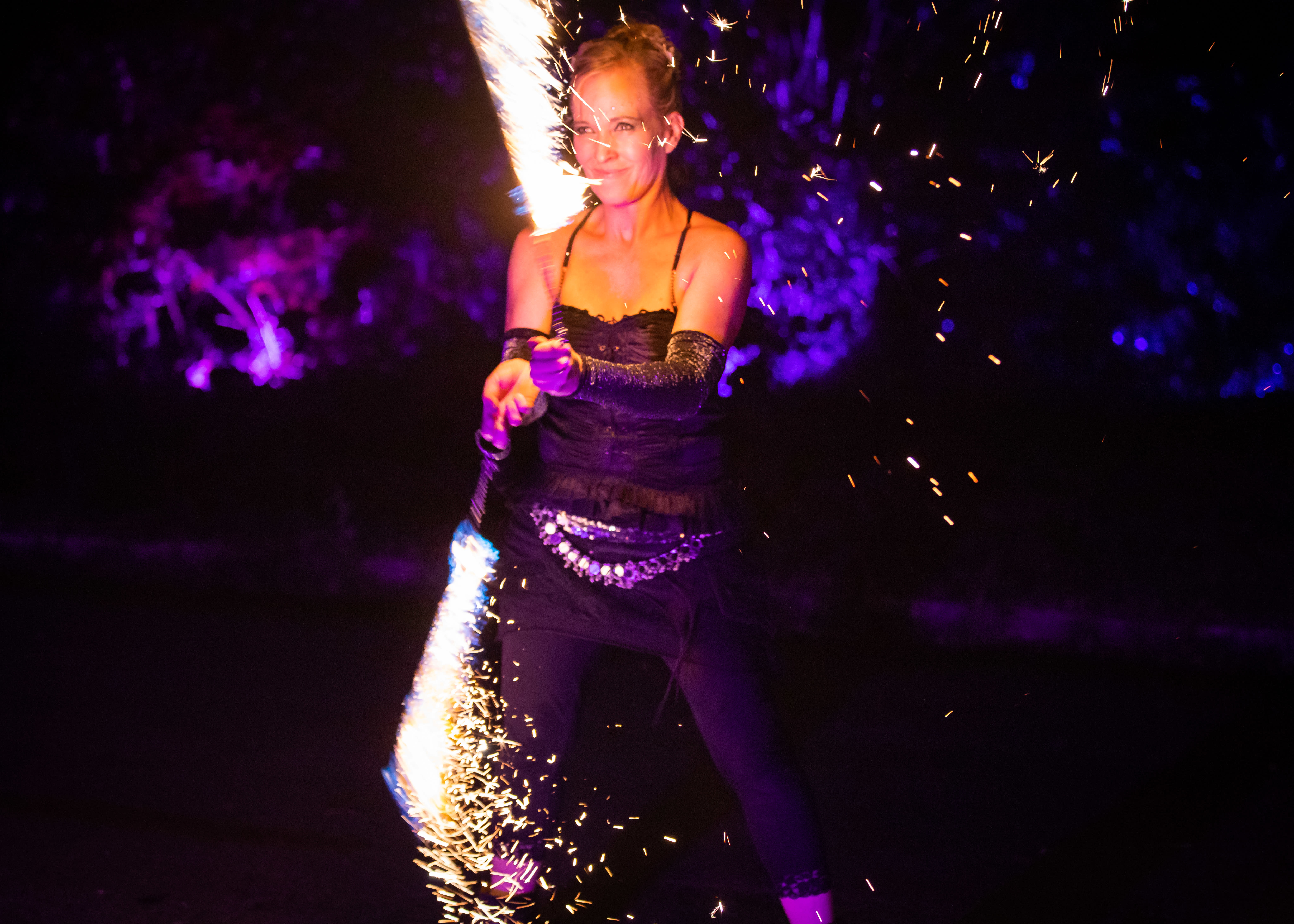 Lydia Schönbrodt ist seit über 10 Jahren professionelle Feuerkünstlerin und LED-Lichtshow-Tänzerin