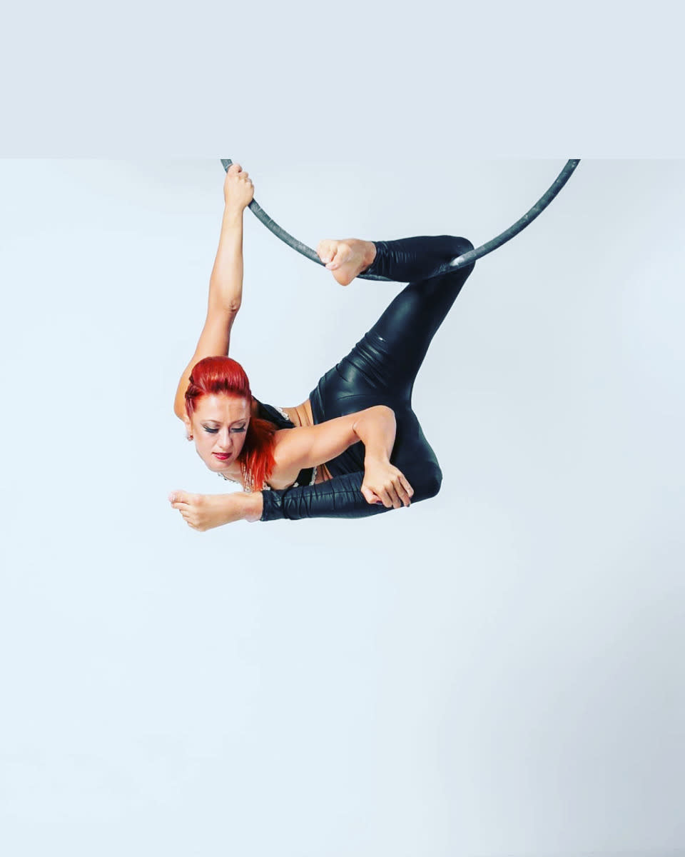 Ich vereine Eleganz, Kraft und Bühnenkunst in einer einzigartigen Mischung aus Pole Dance, Aerial Hoop, LED Hula Hoops und Aerial Tissue.