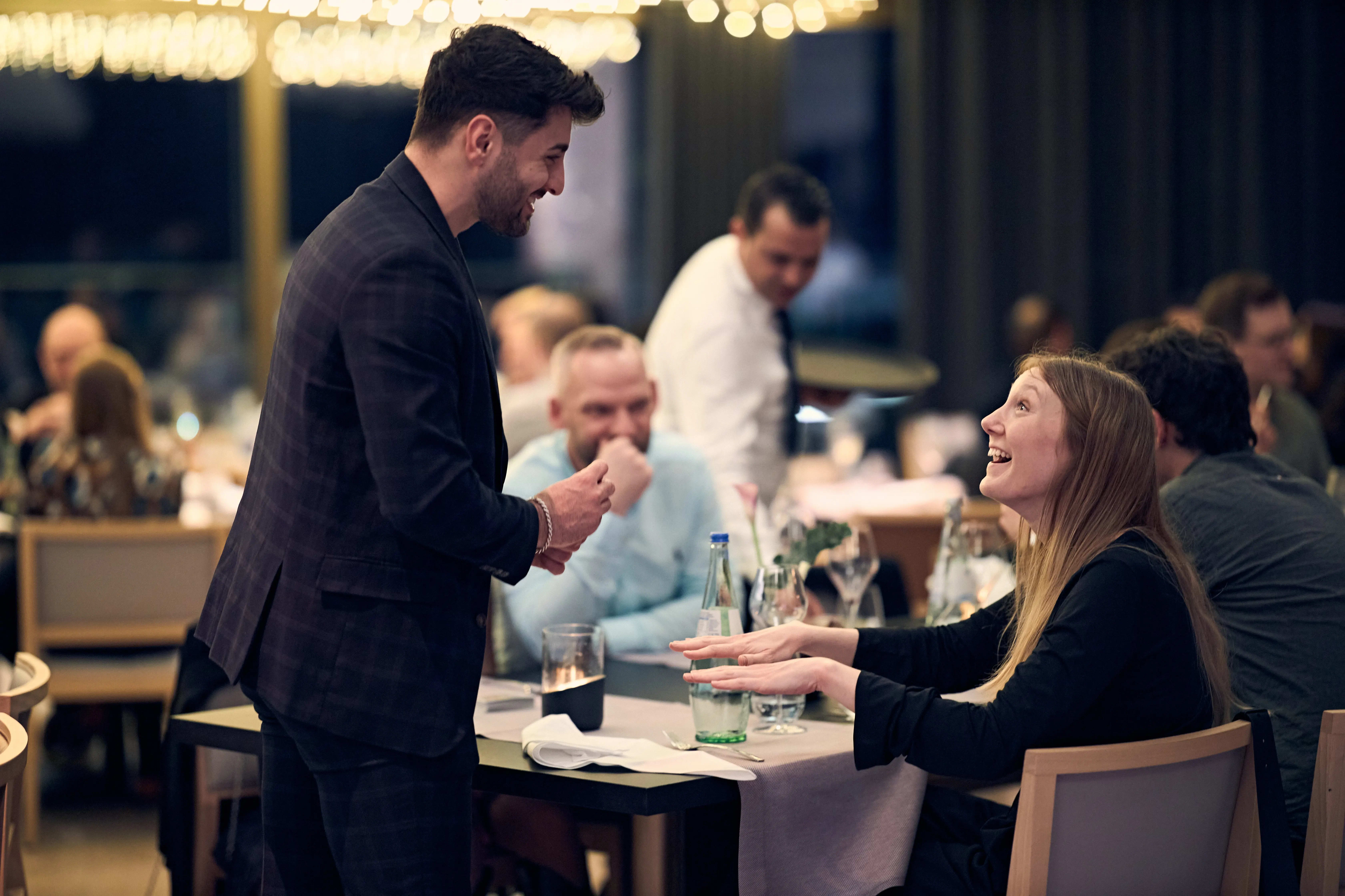 Viele kleine und große Tricks nah an den Gästen brachten Spannung und viele lustige und überraschte Momente mit sich. Seine charmante und lockere Art unterstützte das Ganze noch. Die Reaktionen der Gäste war durchweg positiv!