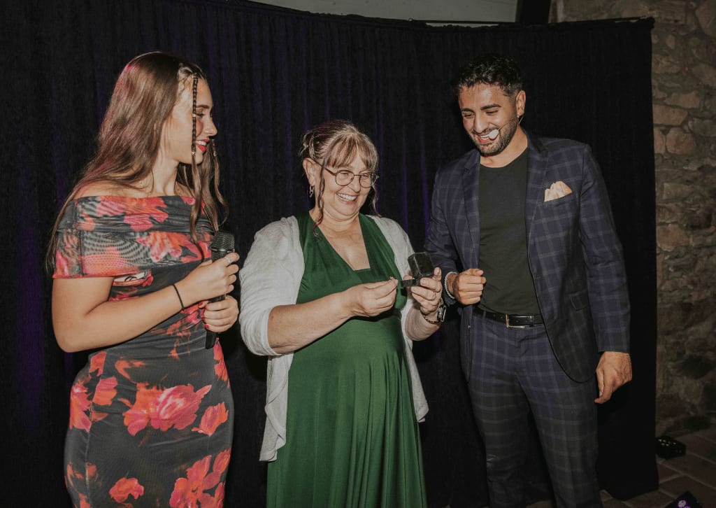 Elyas mischt sich charmant unter die Gäste und sorgt mit verblüffenden Tricks für die richtige Stimmung. Als perfekter Icebreaker bringt er die Gäste miteinander ins Gespräch und sorgt für reichlich Gesprächsstoff. Ob beim Sektempfang, als unterhaltsame Begleitung am Abend oder als besondere Ergänzung zum Bühnenprogramm – dabei werden Produkte, Logos oder persönliche Elemente eingebaut.