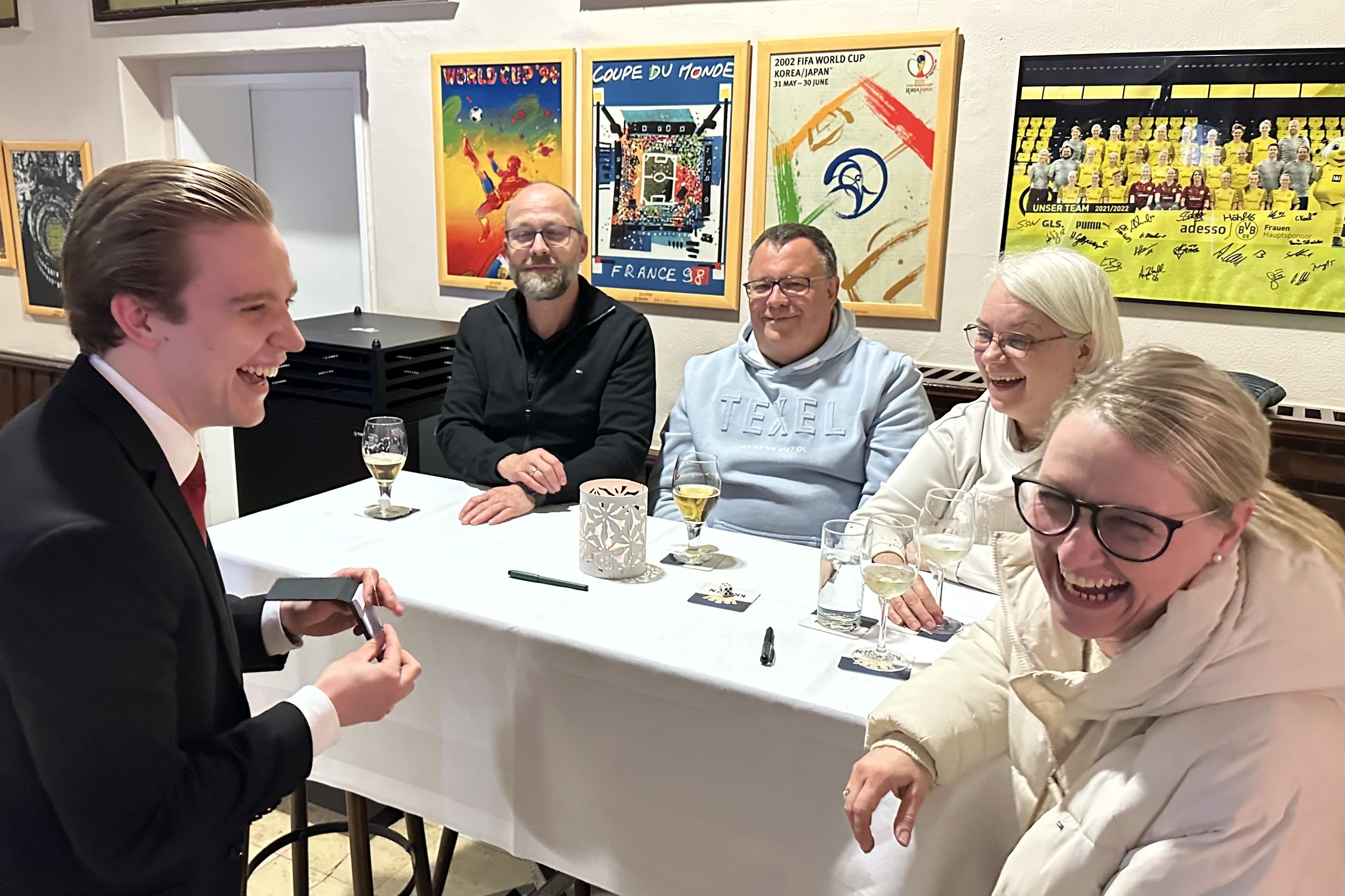 Felix war äußert pünktlich die Show die er abgeliefert hat war sehr gut, ich habe die Tisch zu Tisch Show gewählt da er 2 Shows angeboten hatte die Gäste waren hin und weg.