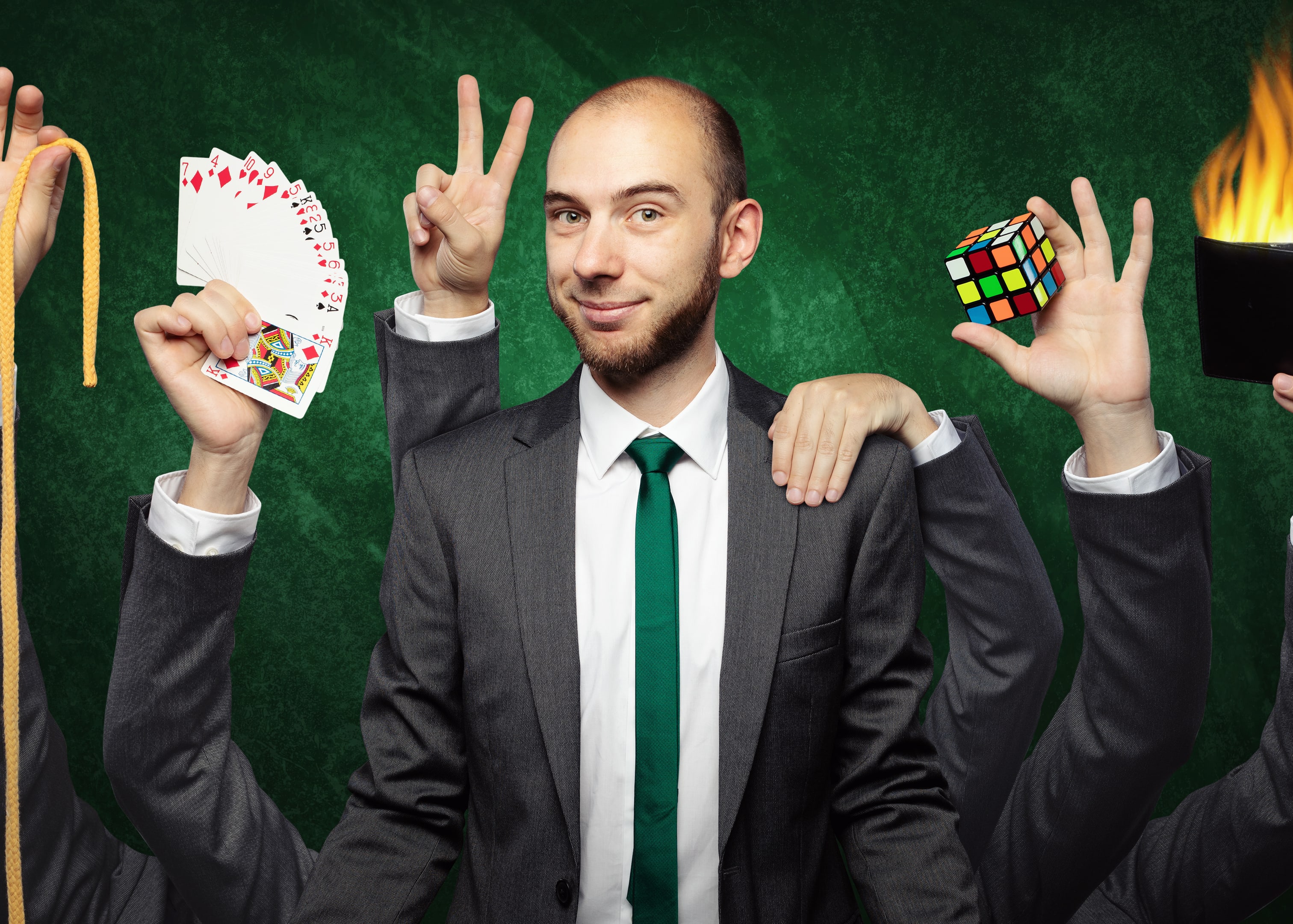 Zauberei geht auch jung, frisch und charmant. Stellen Sie sich vor, wie Ihre Gäste aus dem Staunen nicht mehr herauskommen. Wie der ganze Saal lachend vom Stuhl fällt und gar nicht genug bekommen kann. Begeistern Sie Ihre Gäste mit einer verblüffenden Mischung aus Zauberei, Comedy und Musik, die das Eis auf jedem Event bricht – und selbst Jahre später noch im Gedächtnis bleibt.
