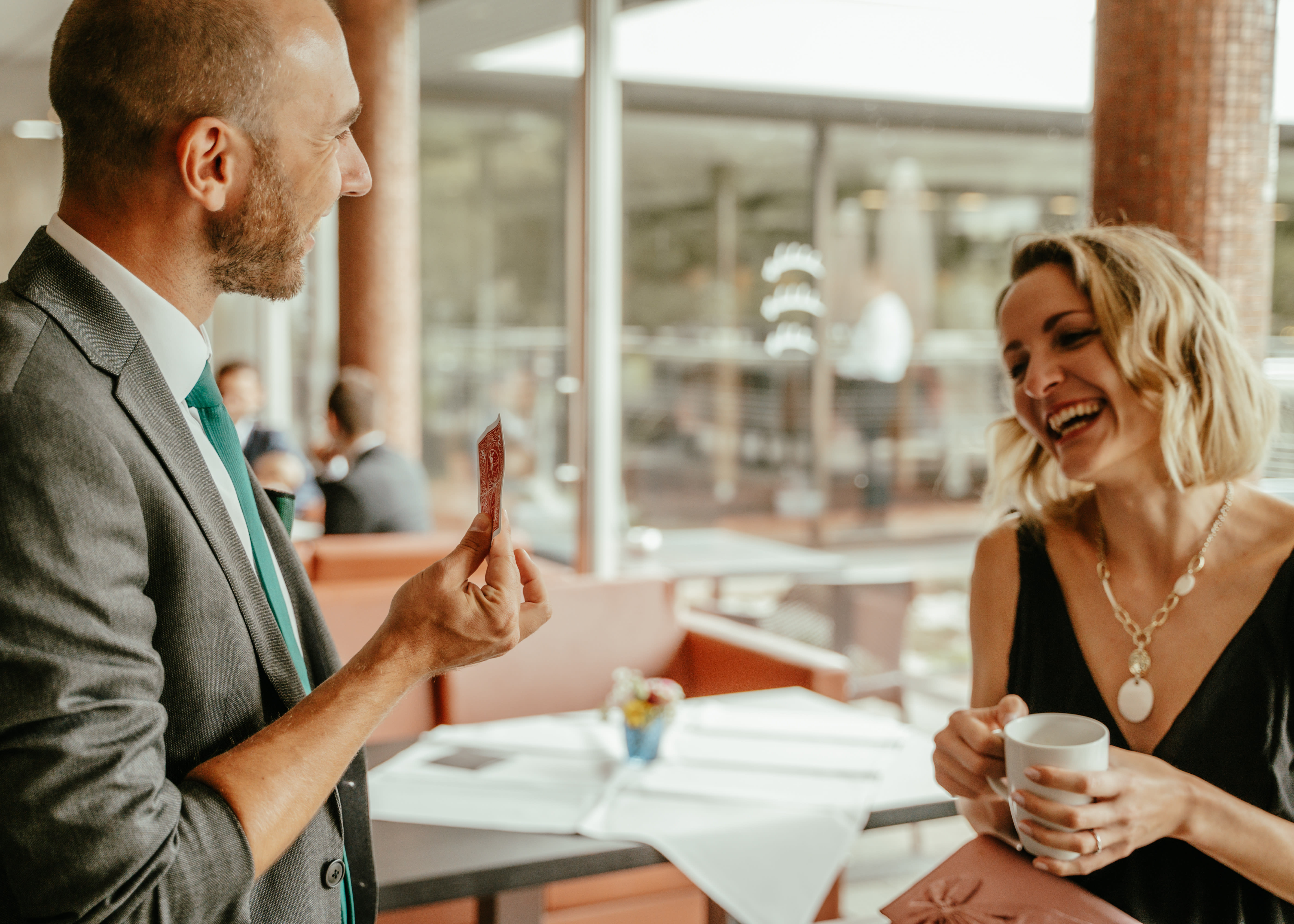 Zur Feier zu meinem 60. Geburtstag hatte ich einen zweiteiligen Auftritt von Felix Fischer gebucht: Close Up und Stand Up. Die Zaubereien zwischen den Gästen am Beginn beim Stehempfang hat alle überrascht und schon mal neugierig gemacht.