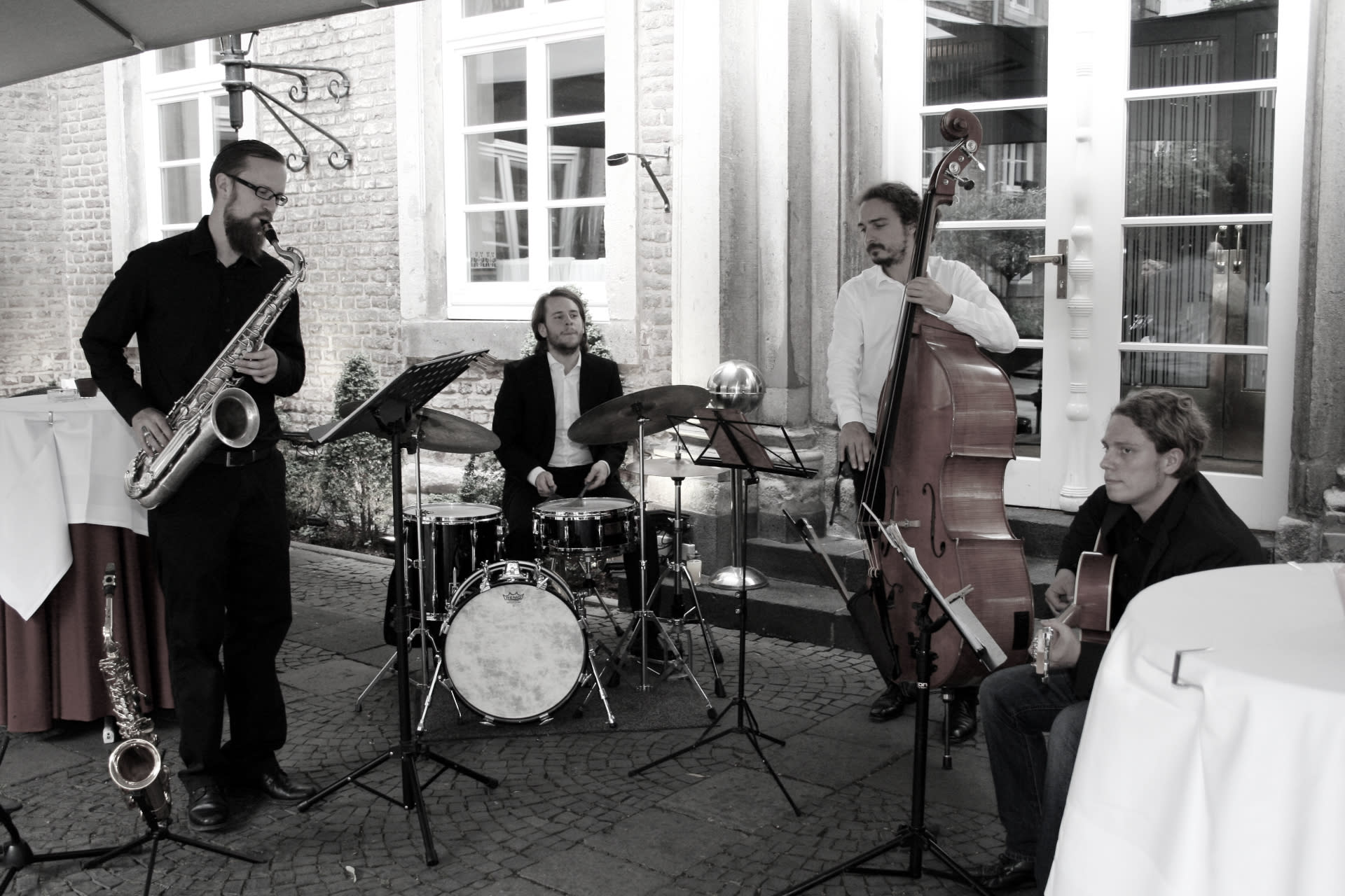 Quartett: Jazzgitarre + Saxophon + Kontrabass + Schlagzeug