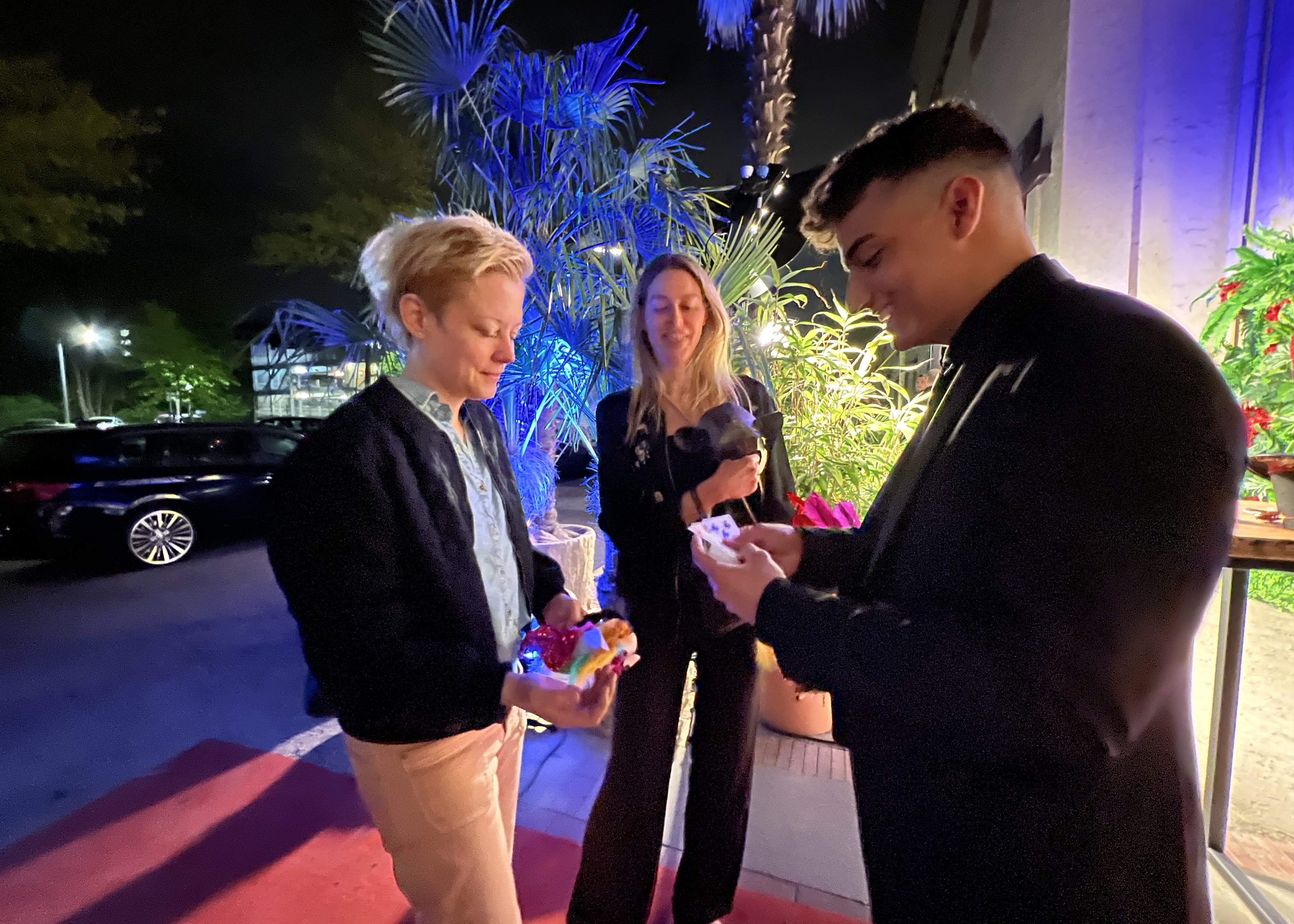Dabei geht er von Tisch zu Tisch und begeistert die Gäste mit seinen Kunststücken hautnah.