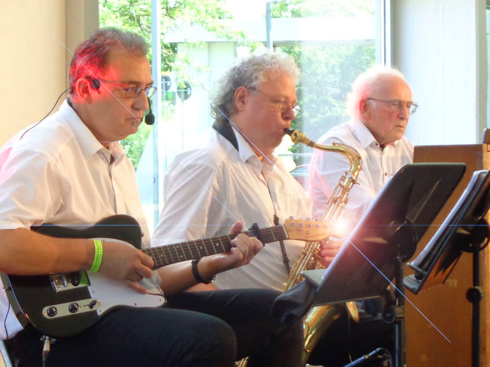 Den harmonischen Gegenpart liefert Jörg Kampmann am E-Piano, der mit seinem facettenreichen Spiel für die nötige Klangdichte sorgt, oder der Saxophonist Frank Linnemann, der dem Sound mit seinen herrlichsten Melodien eine warme, elegante Note verleiht.