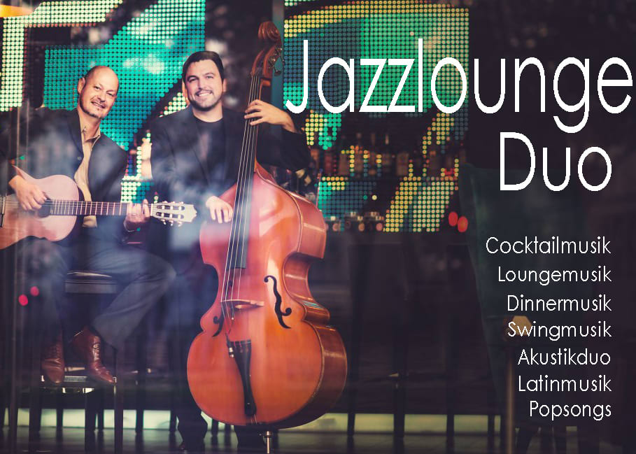 Das Jazzduo JAZZLOUNGE aus Köln ist bekannt für seine dezente und hochwertige Dinnermusik. Überall dort, wo ein Sänger, Blasinstrumente oder ein Schlagzeuger zu aufdringlich wären, ist das JAZZLOUNGE-DUO die richtige Wahl.
