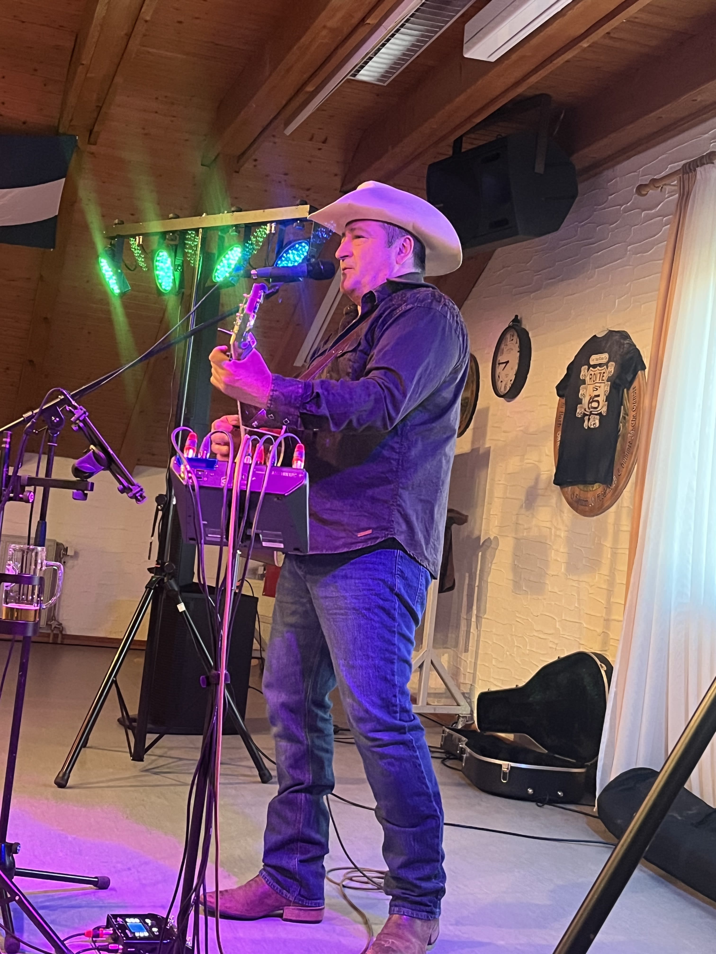 Countrymusic vom Feinsten. Solo oder mit kompletter Band. Von den Klassikern über die großen 80'er Jahre Stars wie George Strait, Garth Brooks und Alan Jackson hin zu den top aktuellen New Country Acts wie Blake Shelton, Zach Top, Midland oder Jon Pardi. Perfekt für Ihre nächste Linedance Party, Firmenevent, Themenabend usw. Linedance Teaching für Ihre Gäste im Rahmen der Veranstaltung möglich. Professionelles Entertainment mit über 30 Jahren Countrymusic Bühnenerfahrung vom kleinen Clubevent bis hin zu den großen Showbühnen. Im Vorprogramm unter anderem von Bands wie TRUCK STOP, TOM ASTOR oder GUNTER GABRIEL.