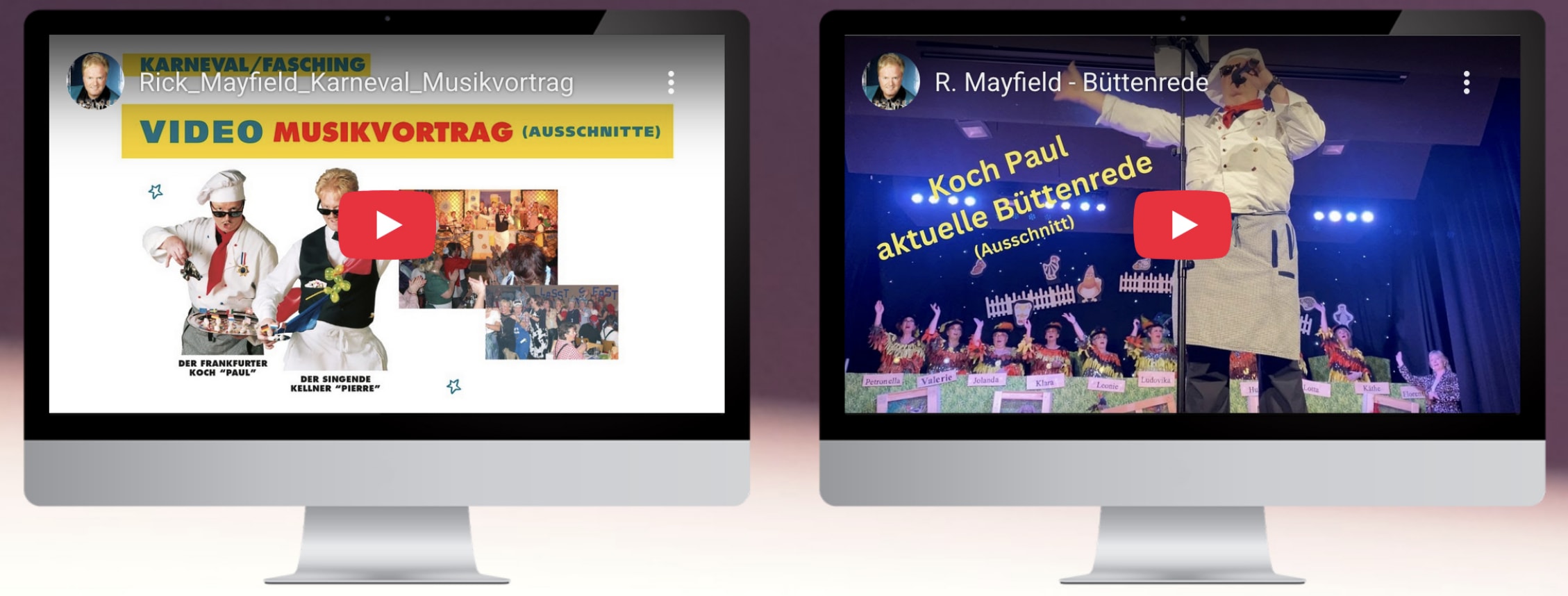 Kostenlose Anfrage an Karneval Fasching Gesangsvortrag Kellner "Pierre" und Büttenredner "Koch Paul von de Soß"