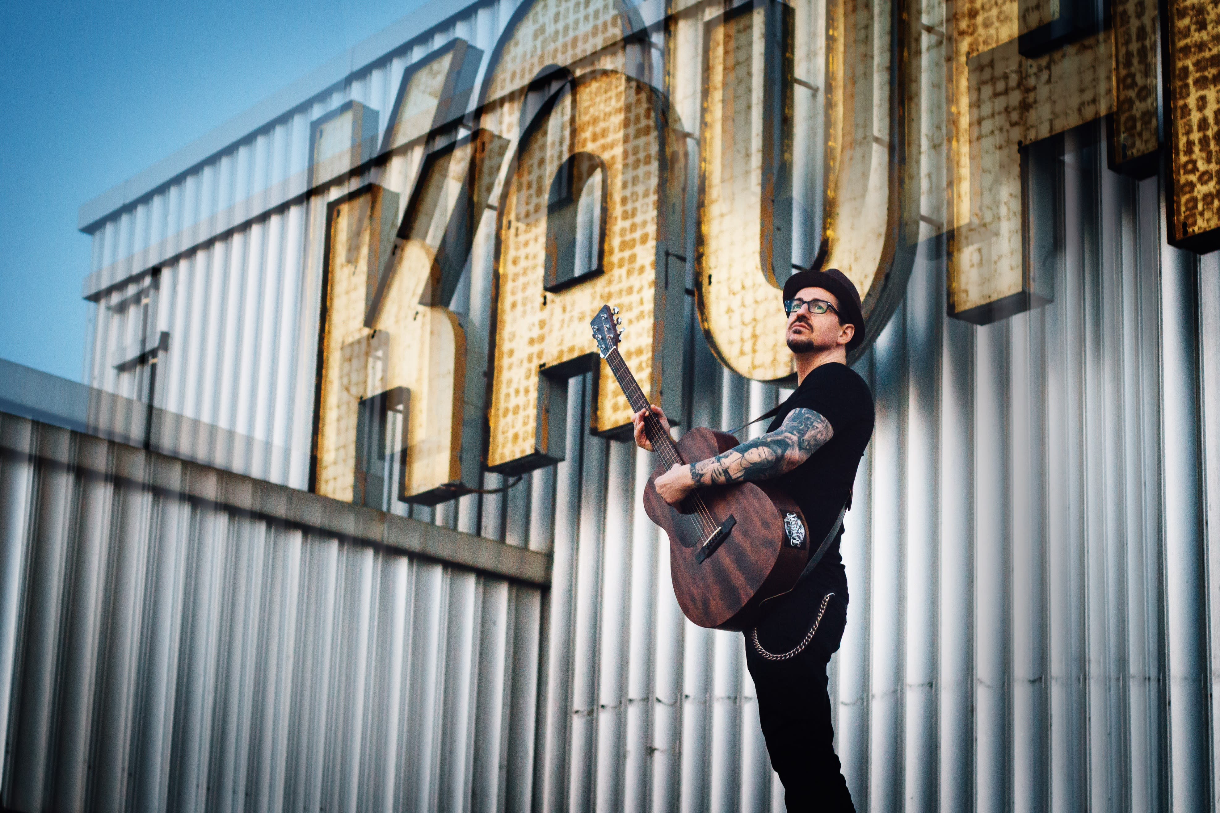 Leidenschaftlicher Sänger mit Akustikgitarre