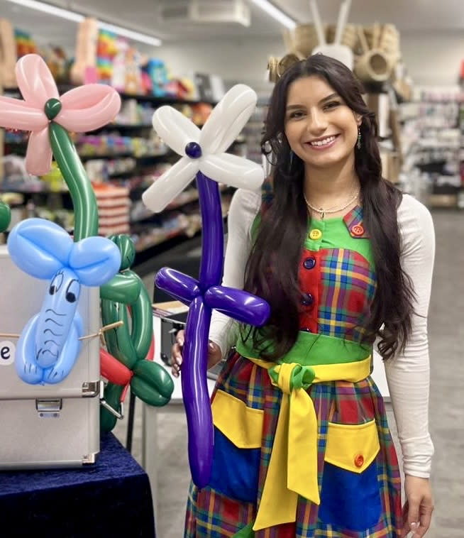 Ich arbeite als Ballonkünstlerin, und im Bereich Face-Painting (Kinderschminken) in der Firma „Holgers Licht-Bühne“.