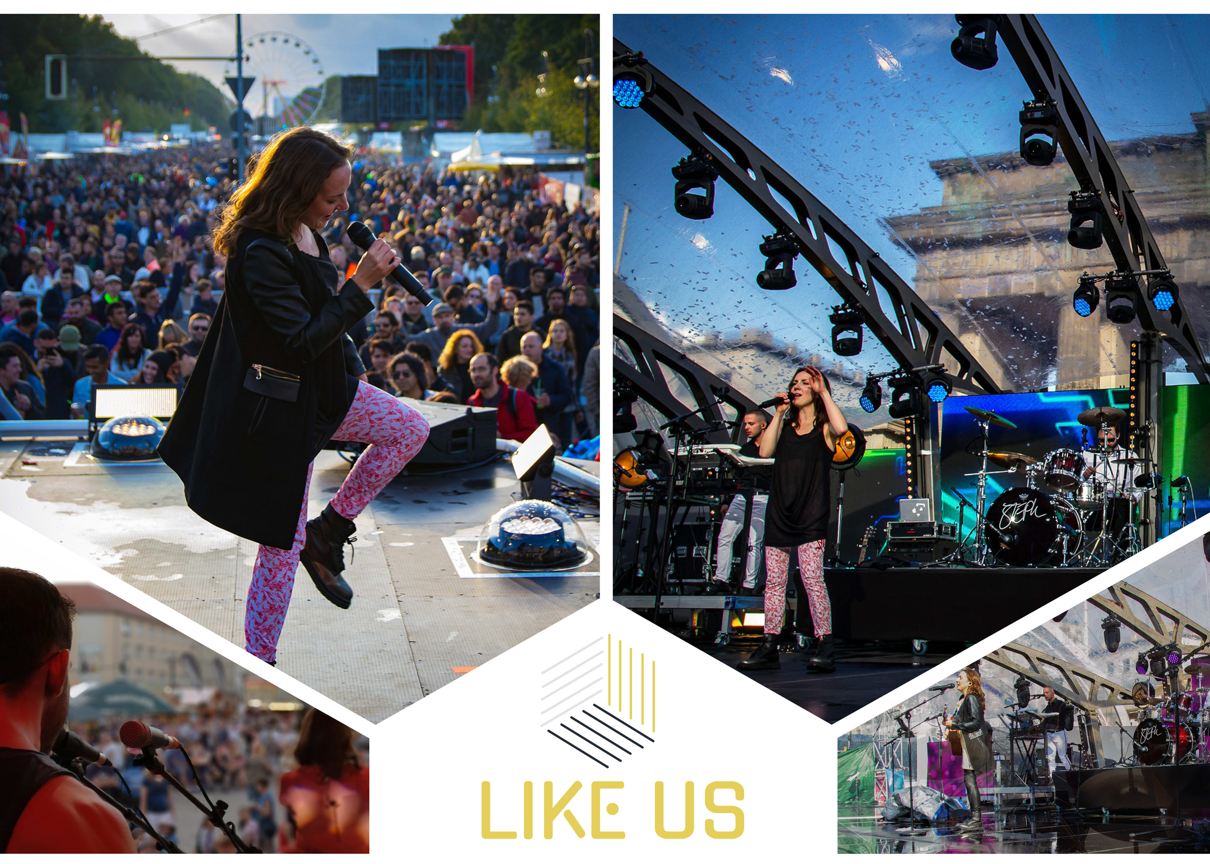 Egal ob auf Open-Air Festivals mit mehreren tausend Zuhörern oder für ein ausgewähltes Publikum, LIKE US spielen auf vielen namenhaften Veranstaltungen in Deutschland und Europa. Bei jedem Auftritt werden die Zuhörer auf eine emotionale Reise der letzten Jahrzehnte mitgenommen.