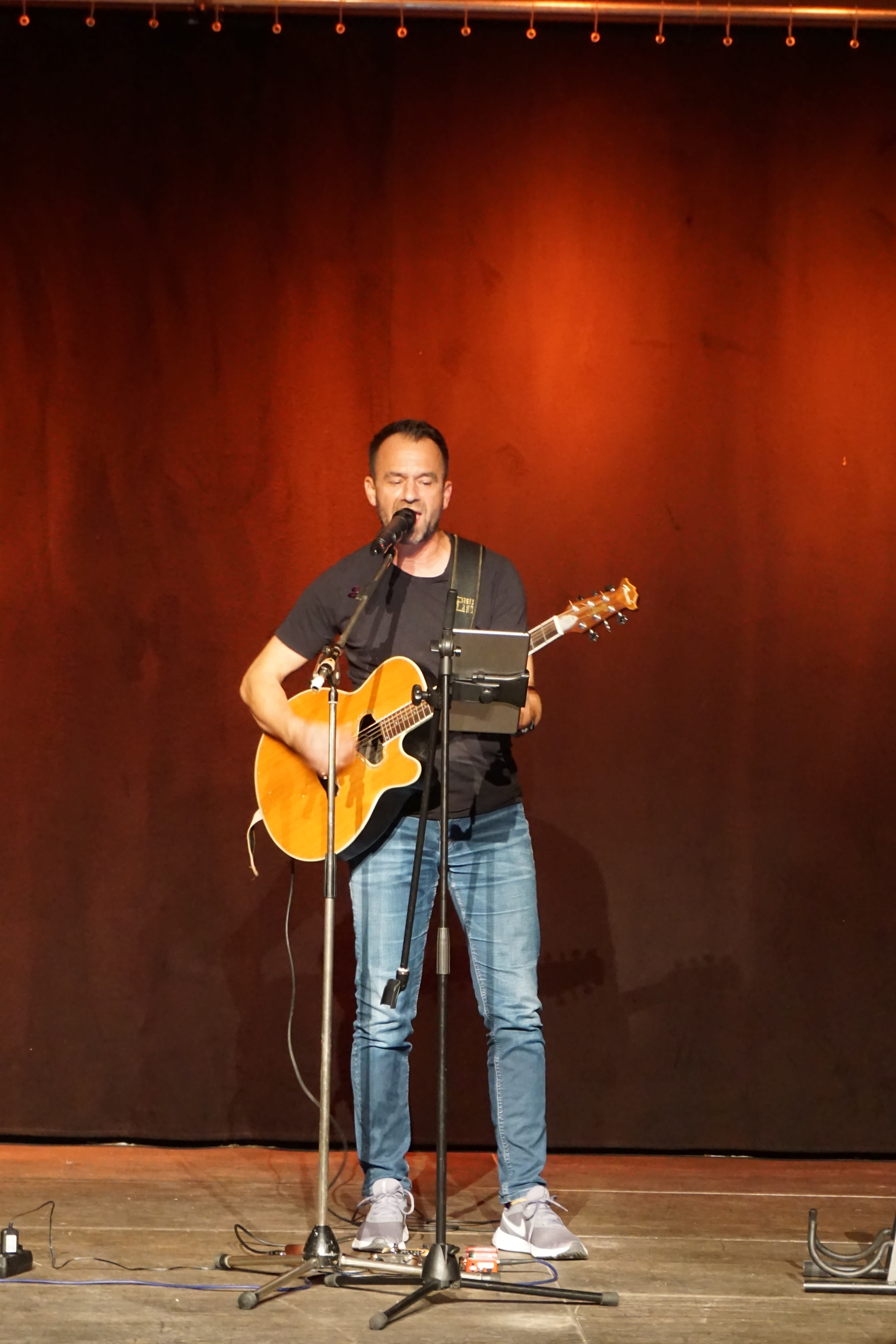 Auch wenn ich mich früher als Songwriter versucht hatte, besteht mein Repertoire heute primär aus akustisch interpretierten Cover-Songs. Manchmal hole ich aber auch meine E-Gitarre zu Hilfe…… Zusätzlich setze ich einen sogenannten Looper ein. Dieser ermöglicht es mir, meine Songs mit zusätzlichen Gesangs- und Gitarrenspuren anzureichern, sodass diese eher nach Band als nach One Man Show klingen. Unterm Strich kommt jede instrumentale und gesangliche Stimme von mir, manche habe ich aber bereits im Vorfeld eingespielt.