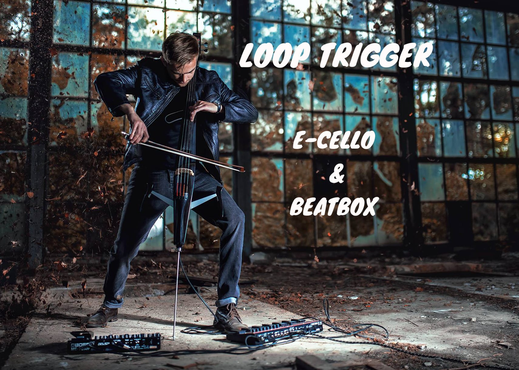 LOOP TRIGGER ist ein Cellist und Beatboxer. Er erschafft live Music mit der hilfe von innovativer Technik des Loopers um den Ton vieler Instrumente zu erreichen - er erzielet diesen Effekt, dank seinem elektrischen Cello, Beatbox und seiner Loop Station.