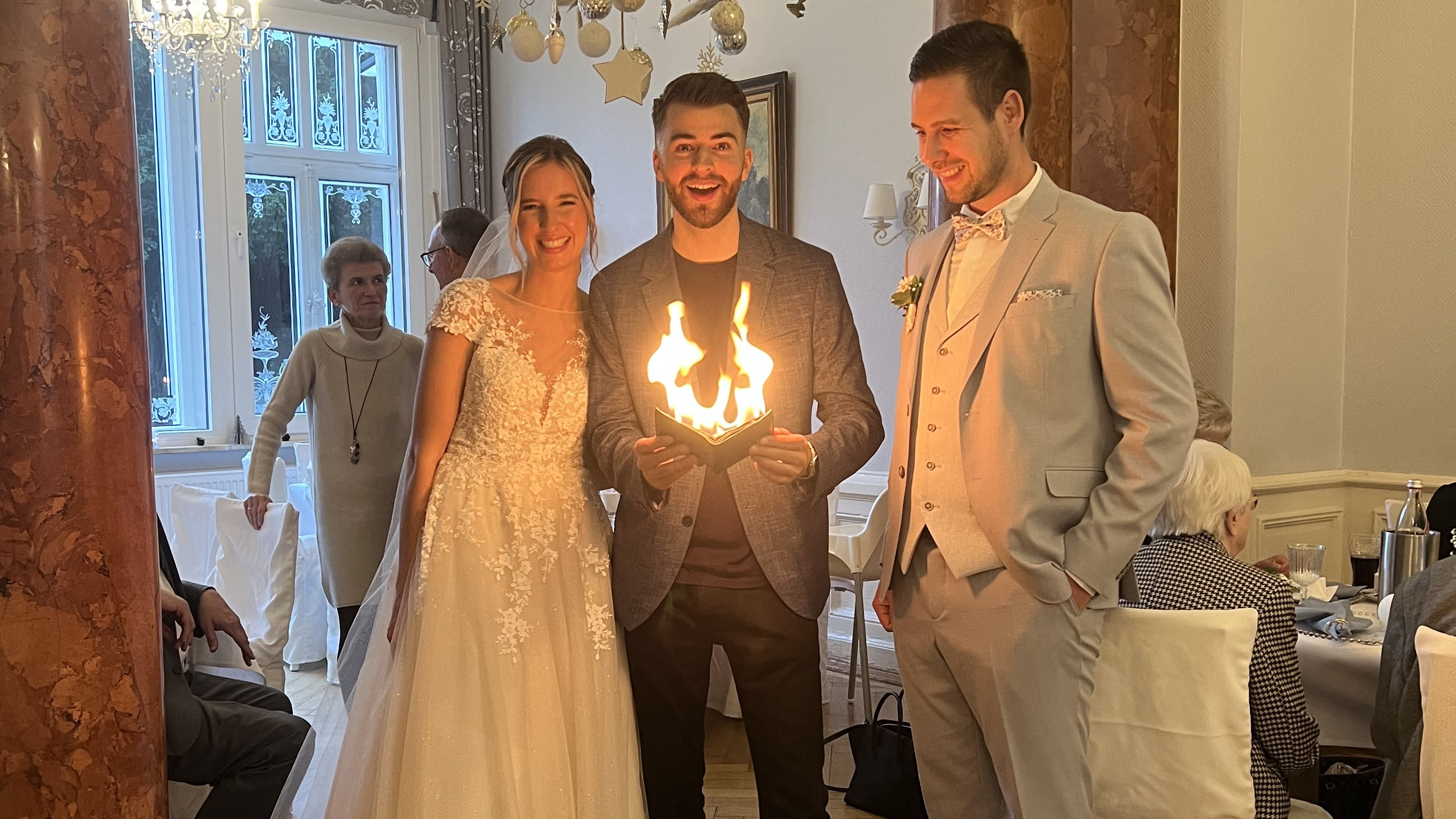 Lukas hat uns und unsere Gäste mit seiner magischen Bühnenshow verzaubert und unsere Hochzeit zu einem unvergesslichen Erlebnis gemacht! ✨ Danach ging er noch an die Tische und begeisterte mit seinen Zaubertricks, was für beste Unterhaltung sorgte. 🪄 Wir haben unglaublich viel positives Feedback von unseren Gästen bekommen – sie waren alle begeistert!
