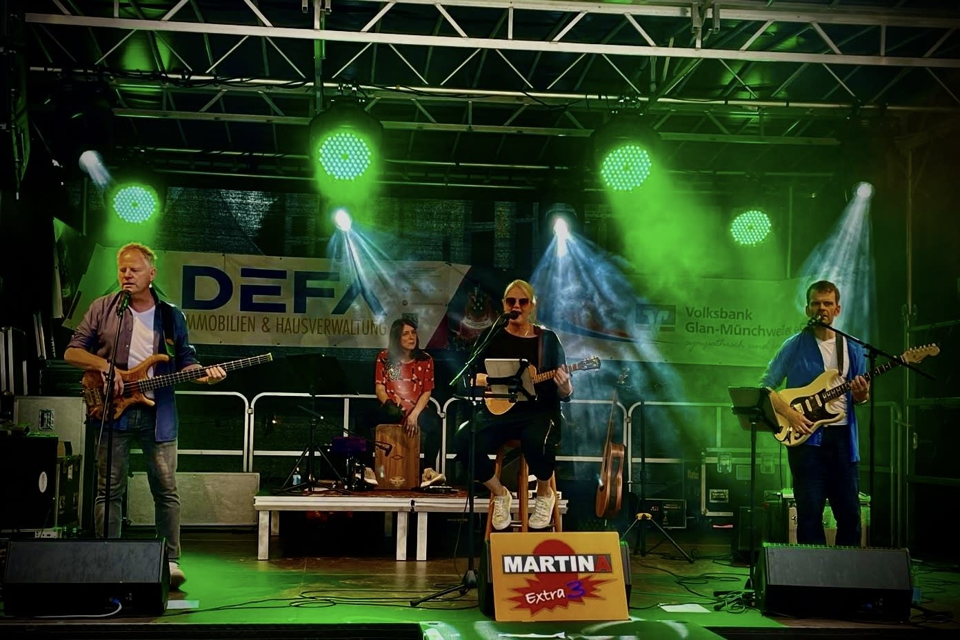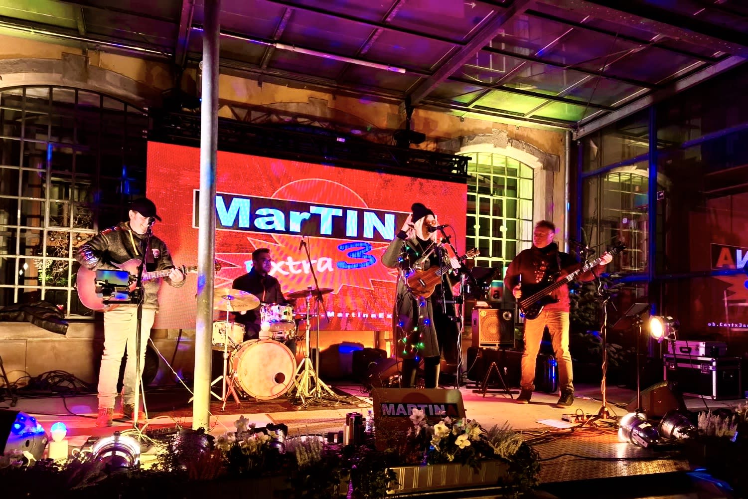 MarTINA Extra 3 traten im Gründungsjahr in TRIO-Besetzung auf (daher der Namenszusatz „Extra 3“), seit 2022 spielen Sie in der Regel in Quartett-Besetzung.