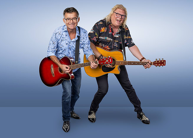 Wir spielen Live Musik OHNE Playbacks oder Rhythmuscomputer, nur zwei Gitarren und zwei Stimmen direkt bei Ihnen am Tisch.