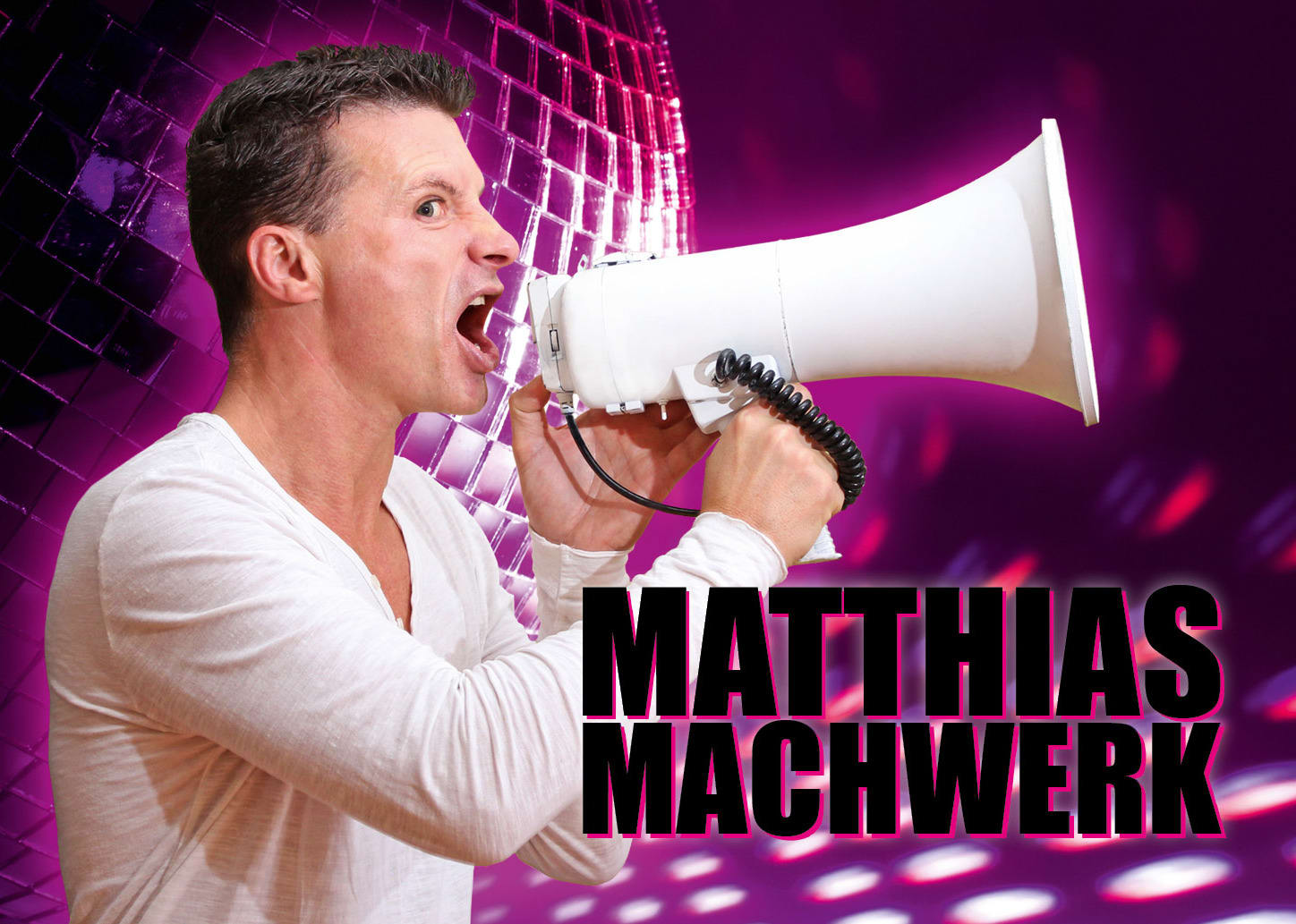 MATTHIAS MACHWERK, bereits zu sehen auf NDR, MDR oder den Schiffen der AIDA, bietet Humor vom Feinsten. Auf ihre Wünsche abgestimmt, präsentiert er eine rasante Comedy-Show mit Ablachgarantie. Die Presse schrieb: „Ein Gag-Feuerwerk! Machwerk trieb die Besucher von einer Lachsalve in die andere…" (siehe Videos)
