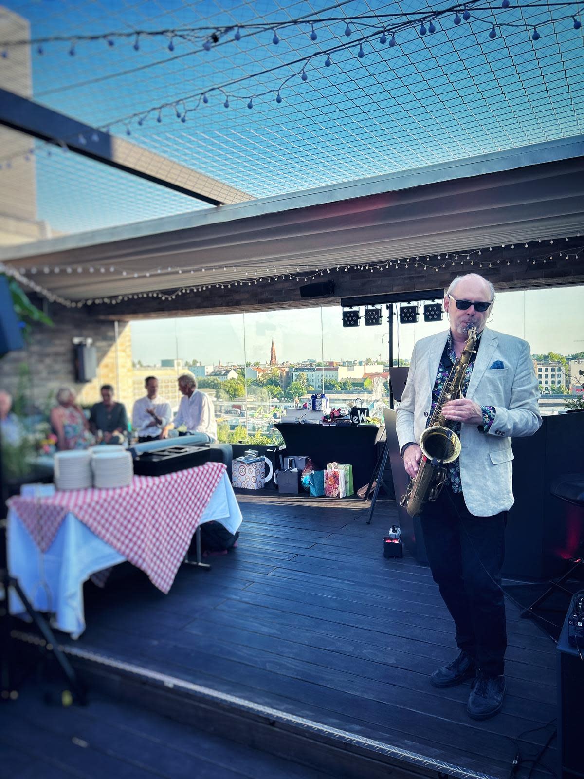 Michael hat den 40sten Geburtstag meiner Frau musikalisch auf dem Saxophon begleitet (80 Gäste, Empfang und Dinner). Dank Michaels wunderbarer, angenehmer und professioneller Musik war von Anfang an tolle Stimmung und das Abendessen und die Party ein Traum. Michael hat den Abend perfekt gemacht und viele Gäste haben uns auch nochmal im Nachhinein gesagt, wie toll sie die Musik und die Stimmung fanden. Ich kann Michael nur wärmstens empfehlen und freue mich schon auf das nächste Fest mit ihm! PS: Die Planung war super angenehm und total unkompliziert. Michael hat seine eigene Ausrüstung (PA/Speaker, Mikros, Laptop) mitgebracht und am Ende wieder mitgenommen. Wir mussten nichts zusätzlich organisieren. Einfach super!
