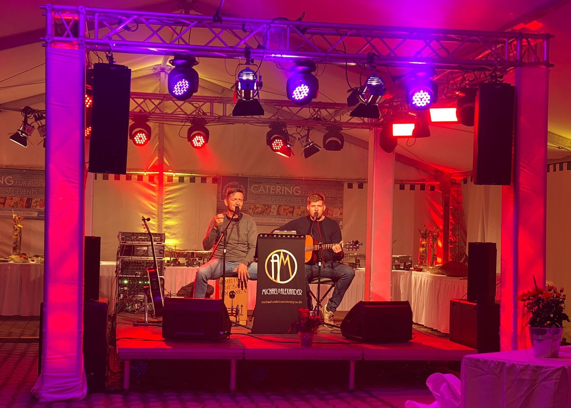 Seit Juni 2012 sind wir gemeinsam als Michael & Alexander unterwegs. Angefangen von Oldies und Austropop, geht unser Repertoire über Schlager bis hin zu modernen Liedern aus Rock und Pop. Wir singen zweistimmig und begleiten uns mit Akustikgitarre und Cajon. Wir spielen gern für Menschen, die das Leben feiern, tanzen wollen oder einfach mal zuhören. Nicht die Größe der Bühne ist das Entscheidende, sondern das Gefühl und die Stimmung, die wir zu transportieren versuchen! Das kann überall sein; auf kleinen Familienfeiern, Geburtstagen, Hochzeiten oder auch öffentlichen Veranstaltungen, wie Straßenfesten oder Weihnachtsmärkten. Einen ganz besonderen Reiz hat für uns die Straßenmusik.