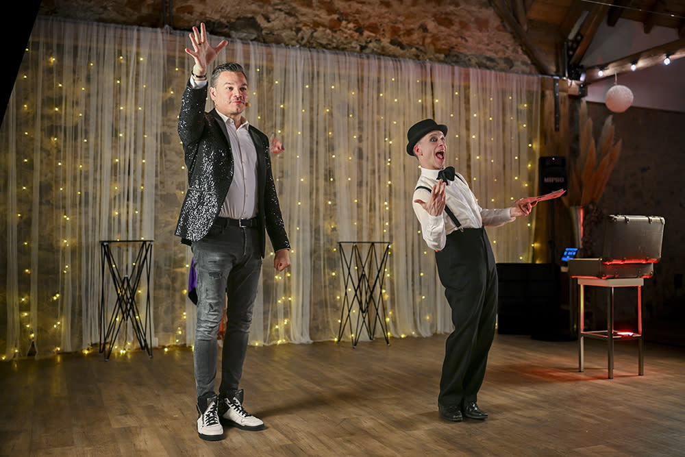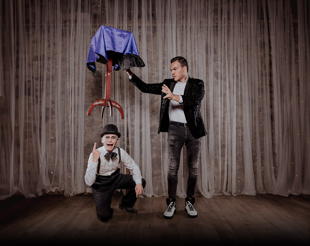 Mit einer perfekten Mischung aus faszinierender Magie und mitreißendem Humor sorgen Marco & Pablo für Staunen, Lachen und unvergessliche Momente. Wenn das Unmögliche plötzlich möglich erscheint und sich Realität und Illusion auf spielerische Weise vermischen, entsteht ein Show-Highlight, das lange in Erinnerung bleibt.