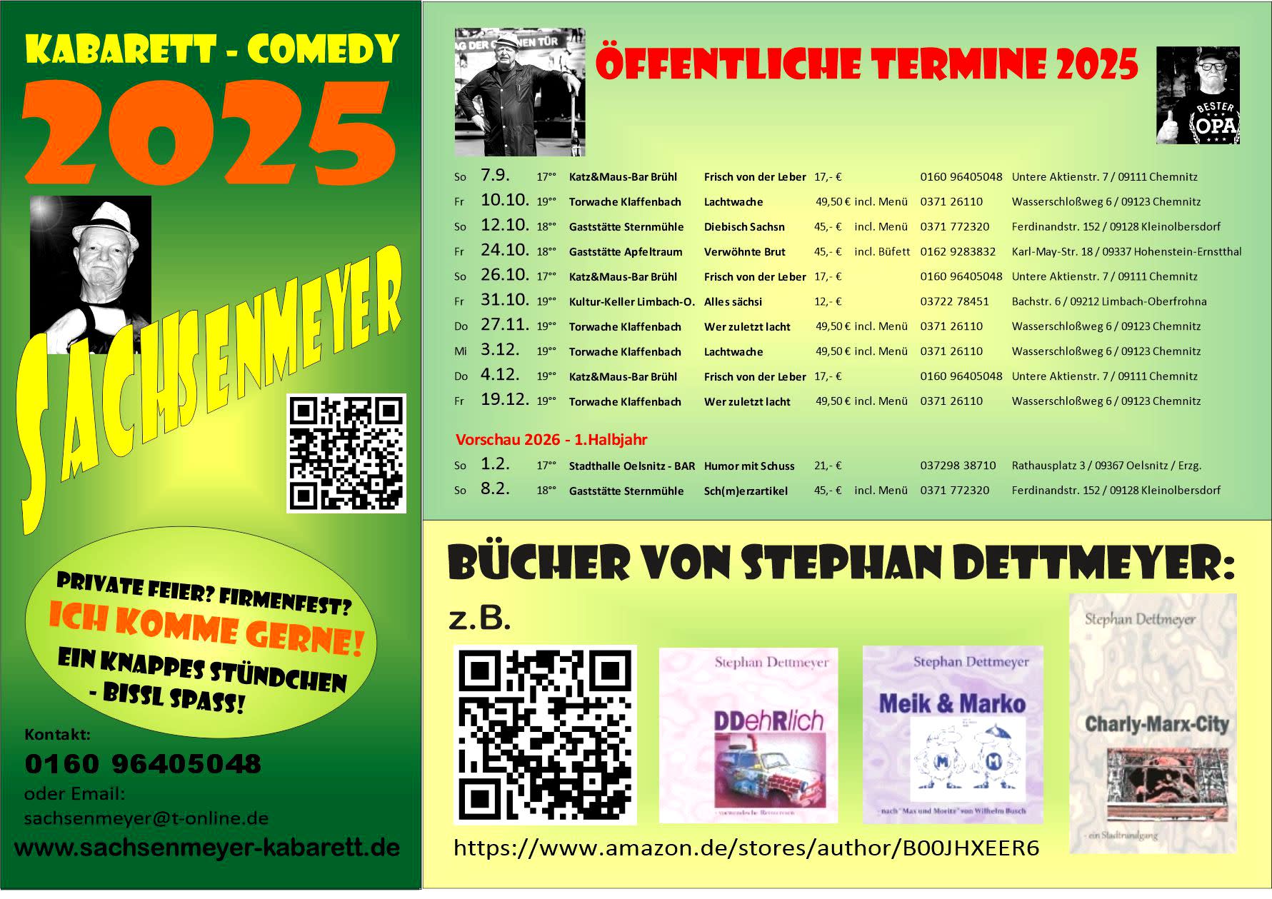 Hinter dem 'ALTEN SACHSEN' verbirgt sich der Kabarettist Stephan Dettmeyer, der zweifelsfrei zum Urgestein des sächsischen Kabaretts gehört. Seit über dreißig Jahren auf der Bühne - davon zwanzig Jahre in der eigenen Spielstätte 'Kabarett-Kiste' in Chemnitz. In den letzten Jahren gastiert er vorwiegend außerhalb auf Bühnen in Sachsen, aber auch bundesweit.