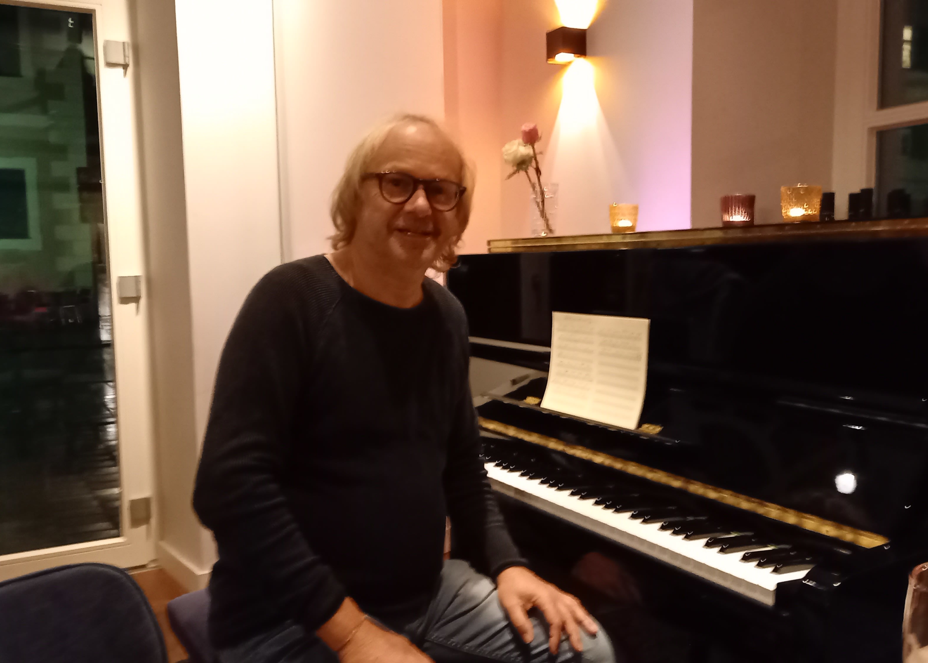 Spiele angenehme jazzige und ruhige Klaviermusik im Stil von Keith Jarrett.
