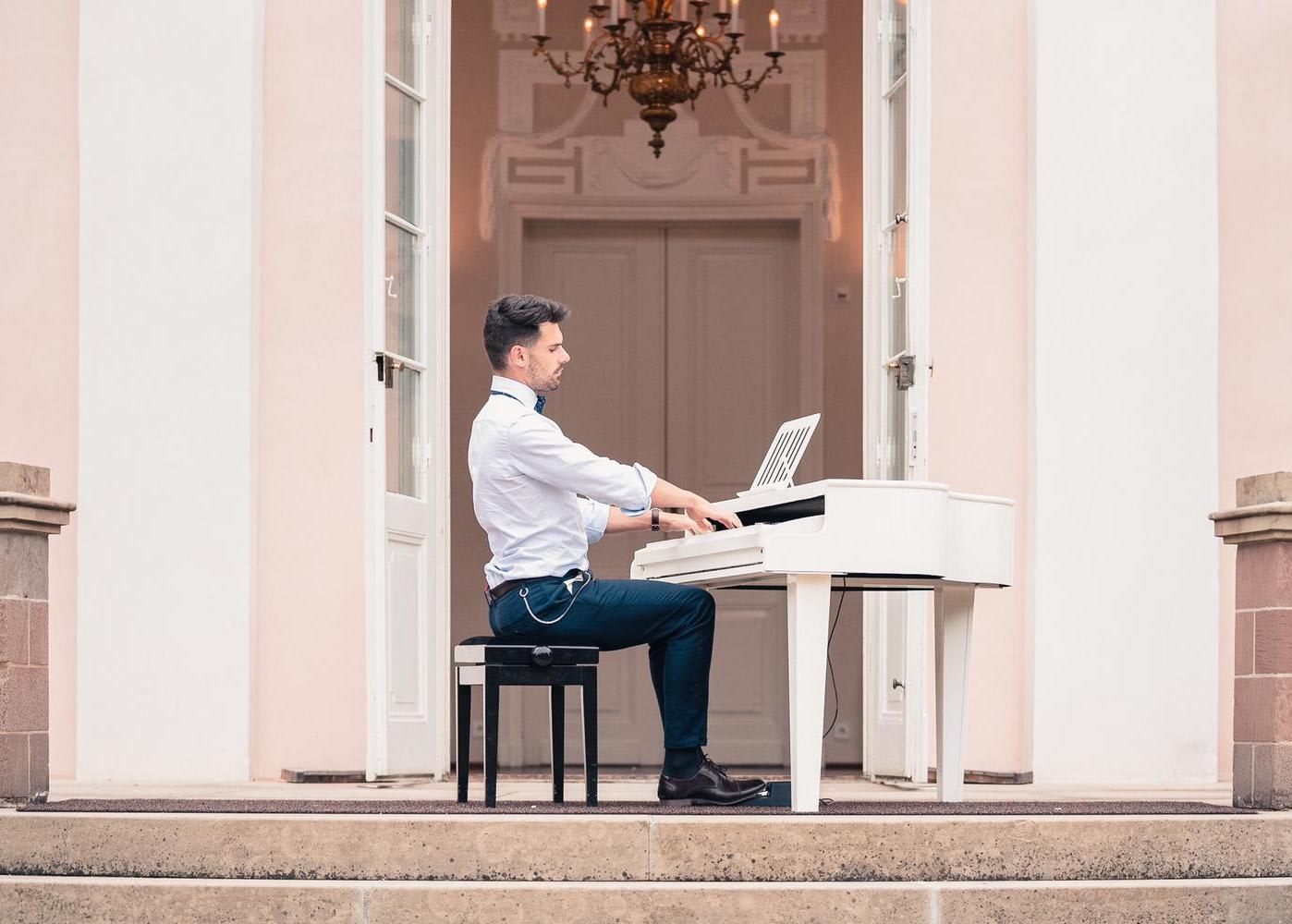 ★ Sie haben kein Klavier oder Flügel vor Ort? Gerne bringe ich meinen eigenen weißen Flügel mit, der Ihrem Event einen optisch spektakulären Feinschliff verleiht. Zusatzkosten fallen nicht an!