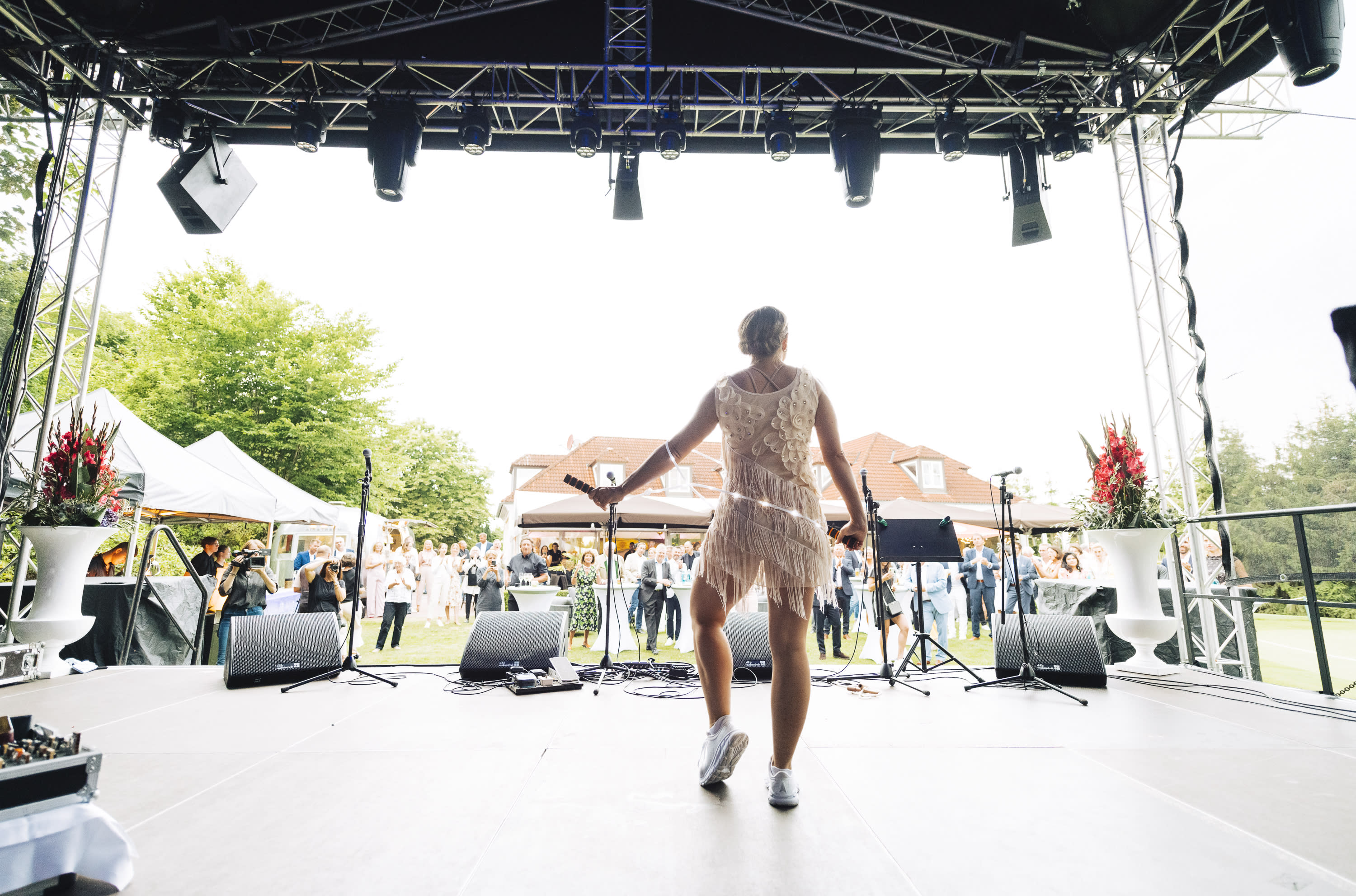 - Erfahrung & Flexibilität: Über 20 Jahre internationale Bühnenerfahrung, angepassten Showlängen und Springseil- Outfit in Firmenfarben.