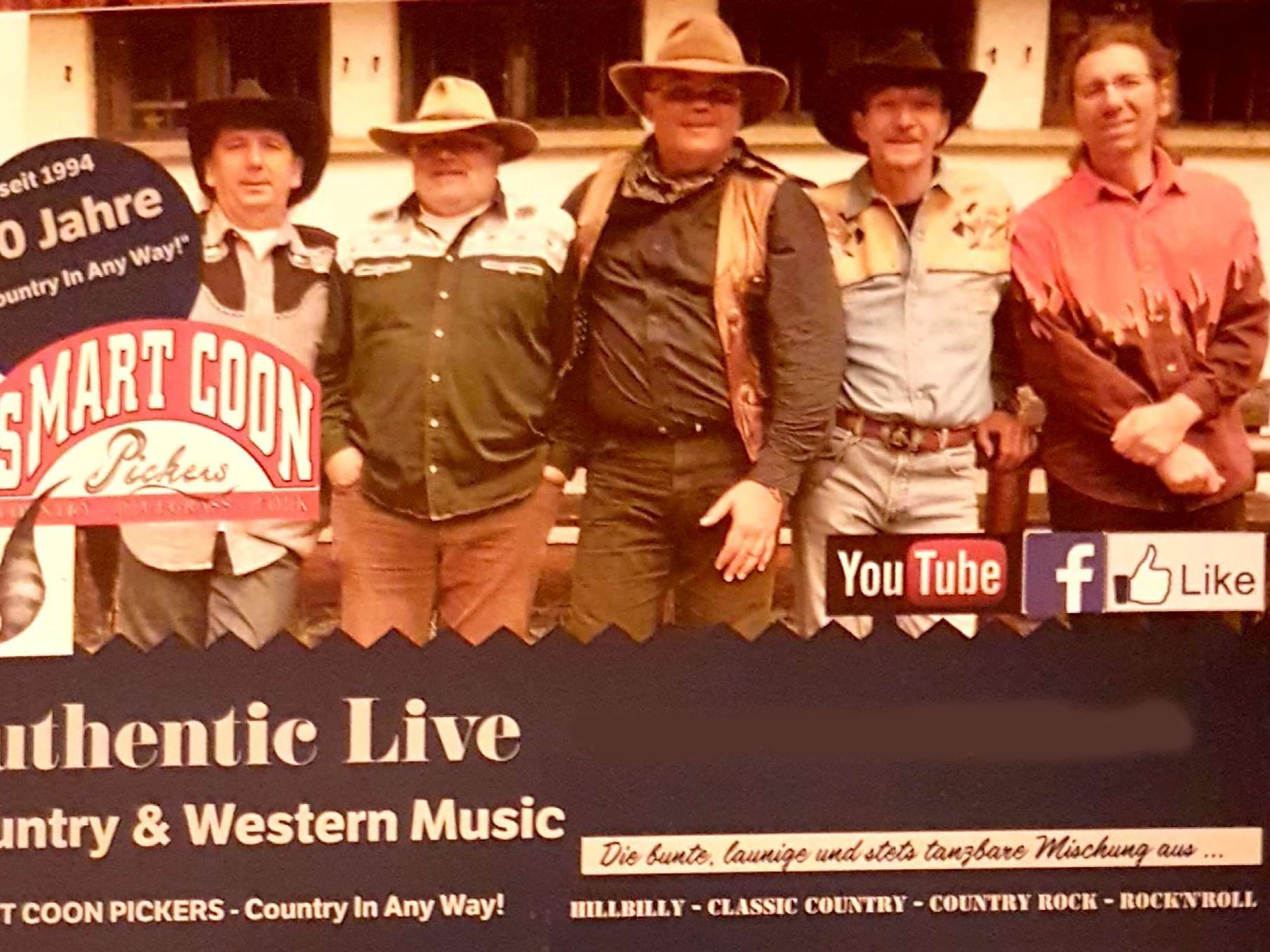 "Country In Any Way!" ist seit nunmehr über 20 Jahren das Motto der Smart Coon Pickers - 5 bühnenerfahrene Musiker aus München. Mit Banjo, Fiddle, Mandoline, Western- / E-Gitarre, Bass und Schlagzeug sind sie seit Jahren nicht nur die quasi Hausband im Cowboyclub München 1913 e.V., sondern heizen mit ihrem buntgemischten und launigen Repertoire auch in Biergärten, Biker- und Reiterfesten, Geburtstags-, Linedance- und Country-Events und sogar bei Country- Hochzeiten und Firmenfeiern in Bayern, Baden-Württemberg und Österreich kräftig ein. Die Songs sind dabei so gemischt, wie das meist bunte Publikum: Von traditionellen Johnny Cash Klassikern, über Schmusesongs der Bellamy Brothers bis hin zu Lynyrd Skynyrd, Rolling Stones und Steppenwolf ist alles vertreten, was mächtig Laune macht und das Tanzbein kräftig zum Zucken bringt!