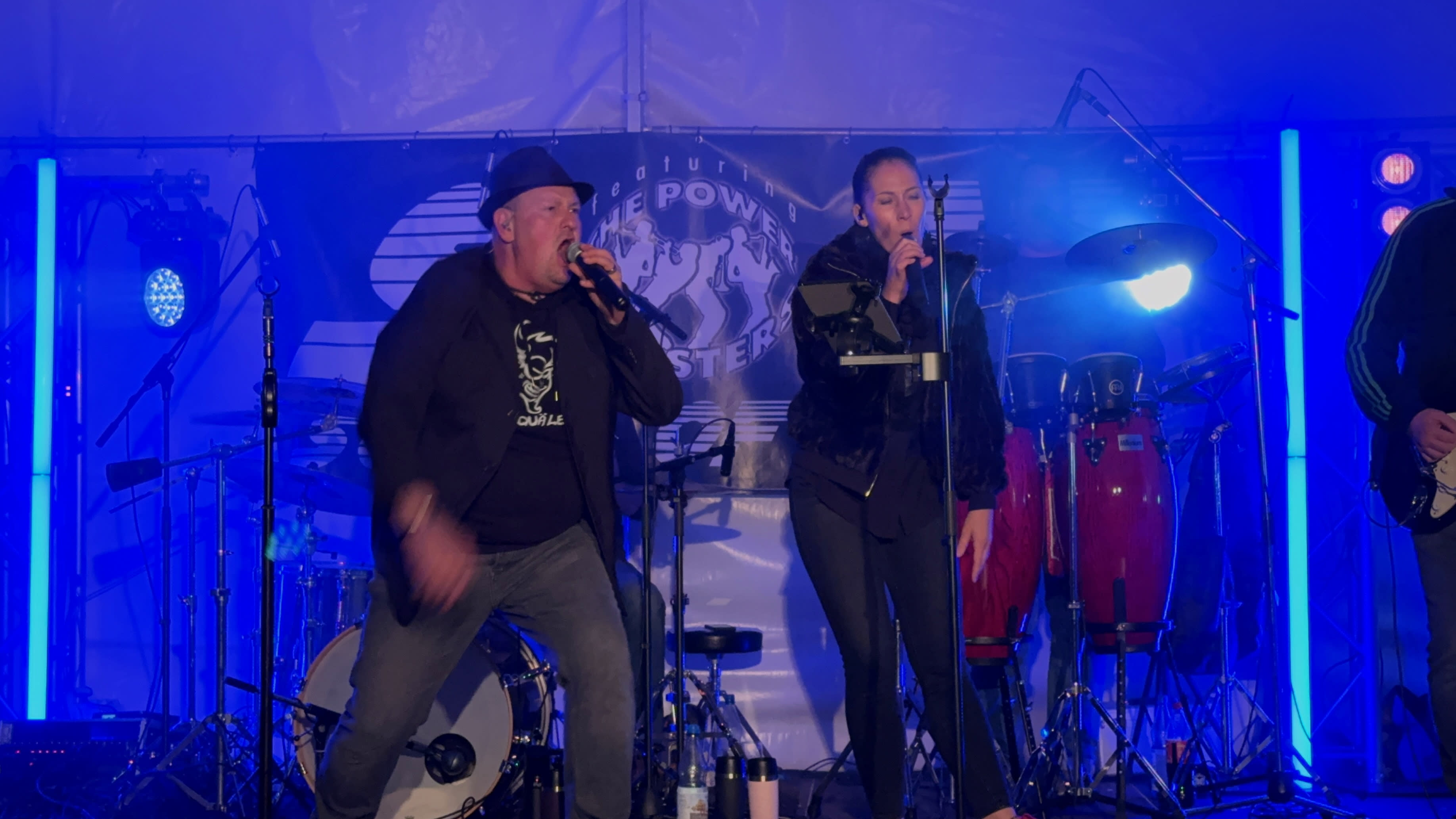 Marko am Bass und Thomas am Schlagzeug bilden unser unschlagbares Rhythmus-Team. Tief, tight und treibend – hier sitzt jeder Groove. Ergänzt wird das Ganze durch Stephan an den Percussions, dessen Hände in Rekordzeit Congas, Bongos und Shaker zum Glühen bringen – ganz zu schweigen von seinen Backings.