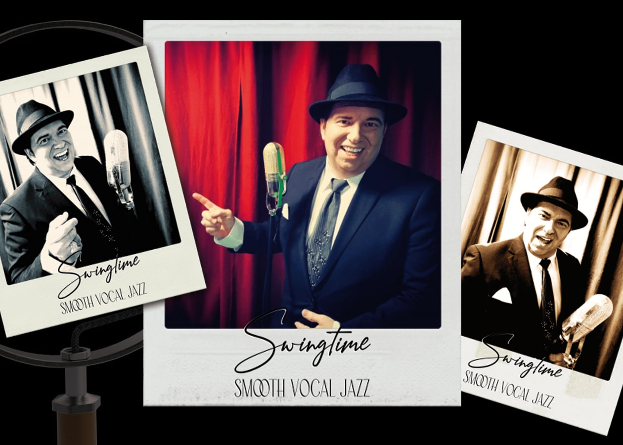 Buchen Sie “Swingtime – Smooth Vocal Jazz Sänger” für stilvolle Ambiente-Hintergrundmusik & Lounge-Jazz Dinnermusik. Professioneller, chilliger Gesang für Backgroundmusik und musikalische Untermalung. Swing für Hochzeit, Hochzeitsempfang, Hochzeitsdinner, Sektempfang, Firmenfeier, Gala und Messe-Events.